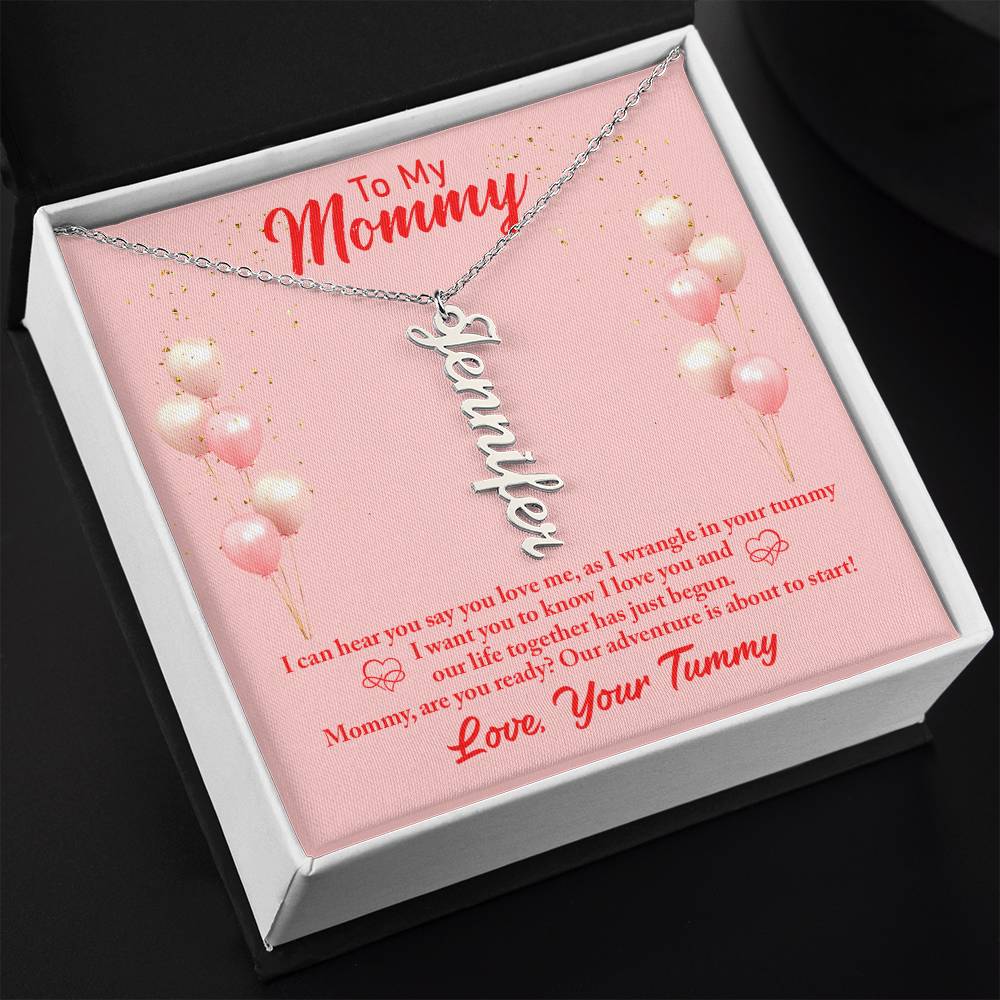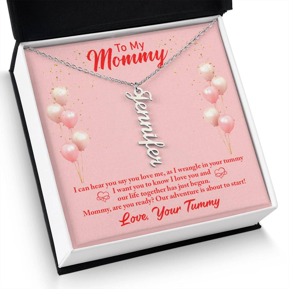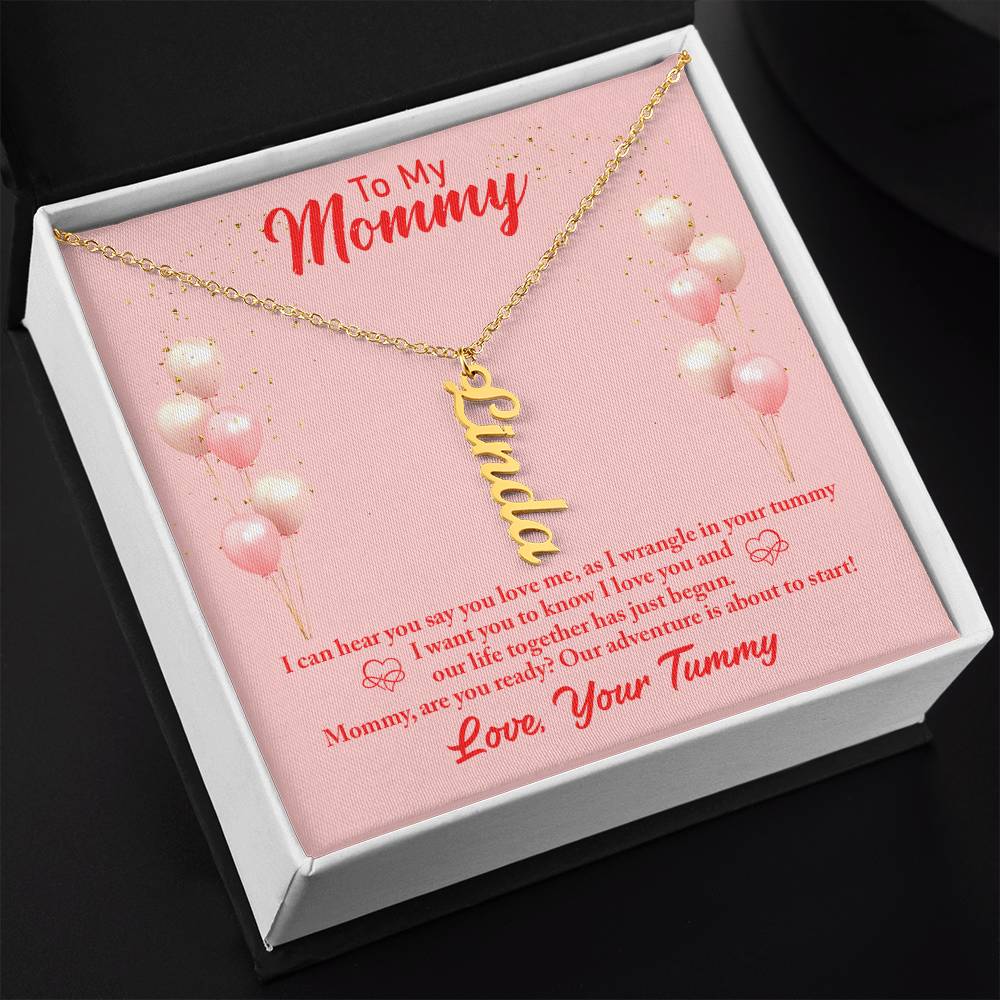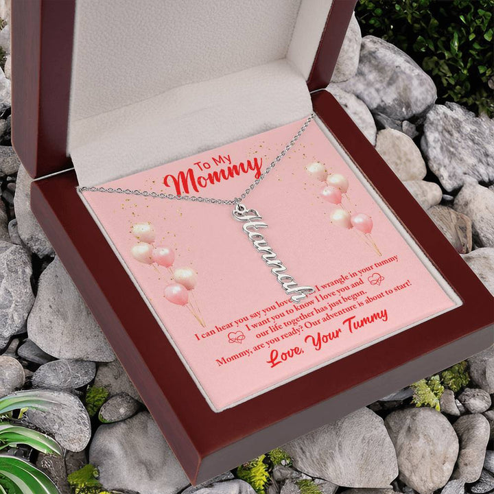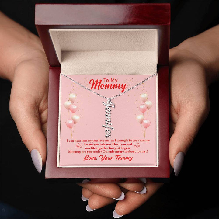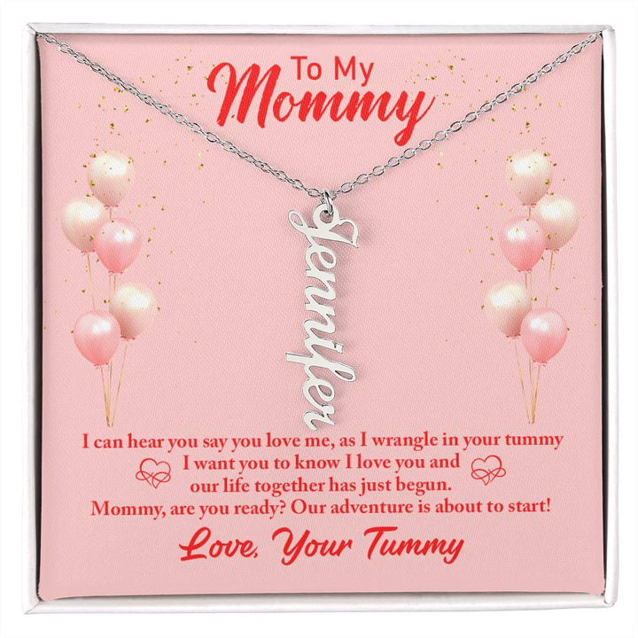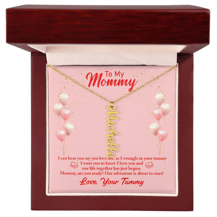 To My Mommy | I can hear you say you love, as I wrangle in your tummy - Multi Vertical Name Necklace
