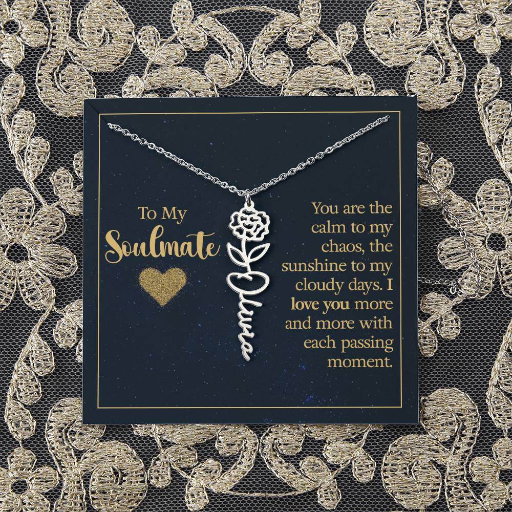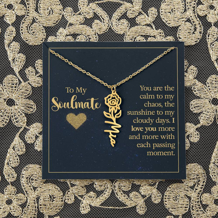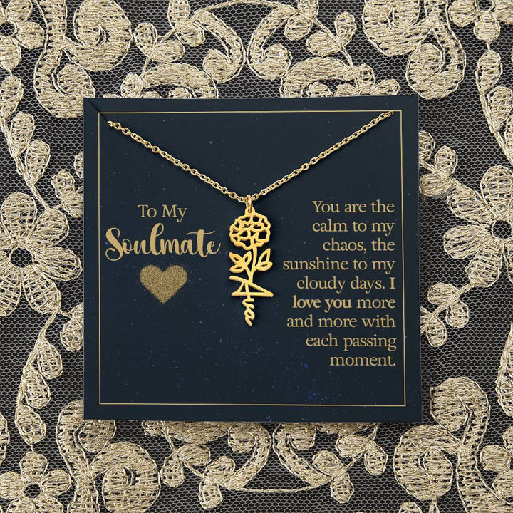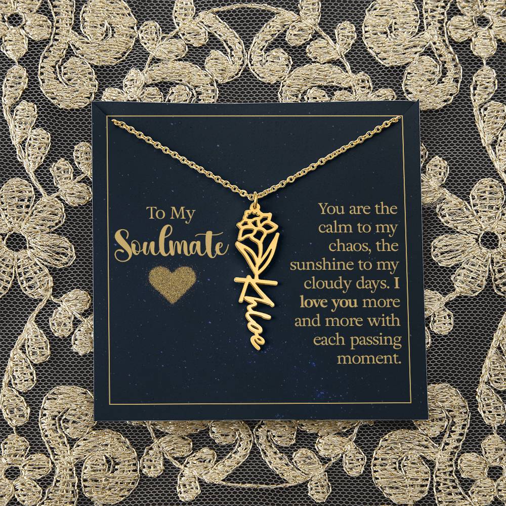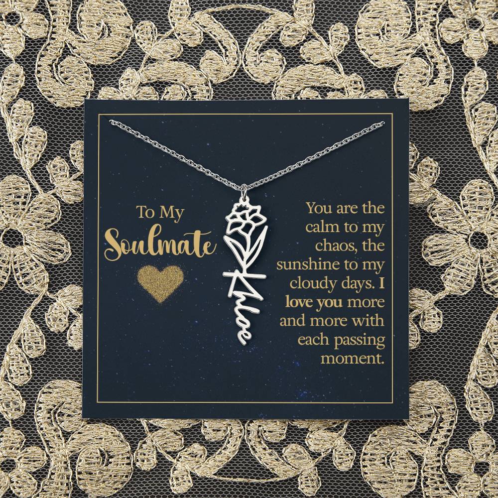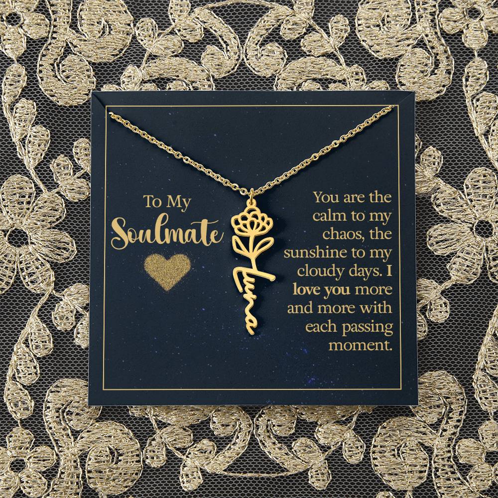 To My Soulmate | You are the calm to my chaos, the sunshine to my cloudy days - Flower Name Necklace