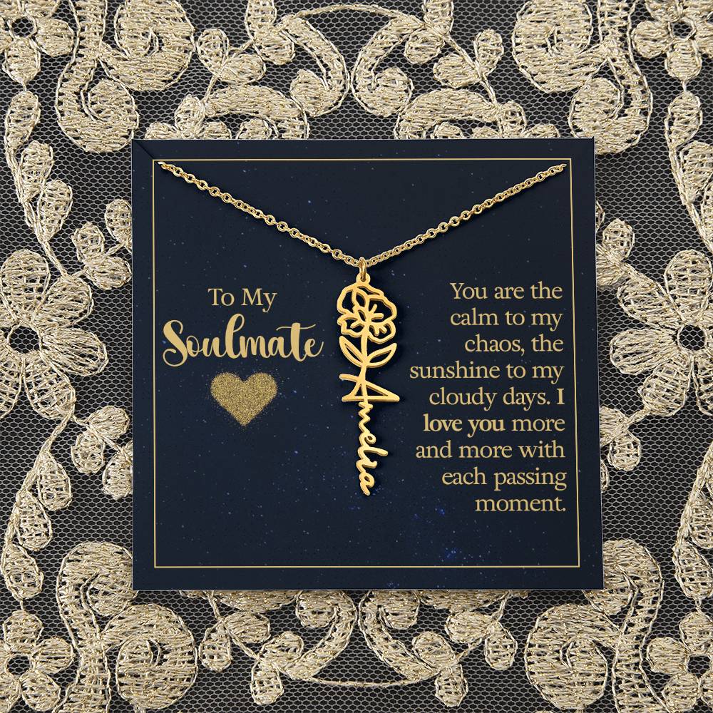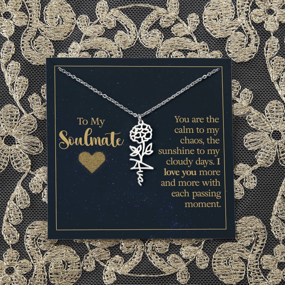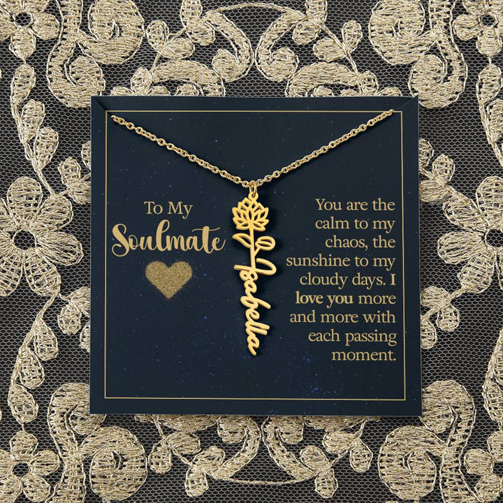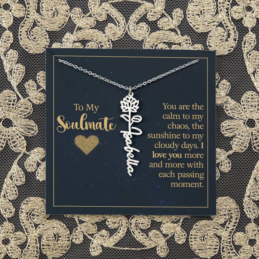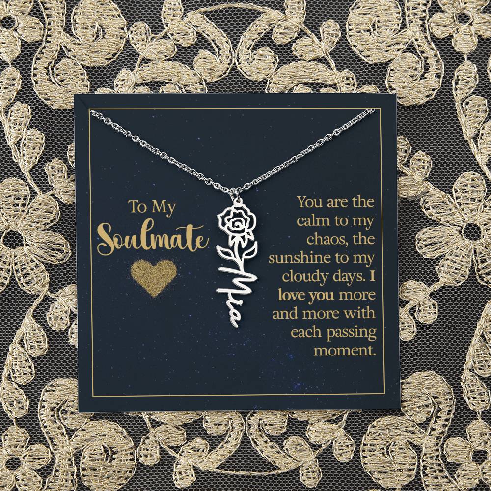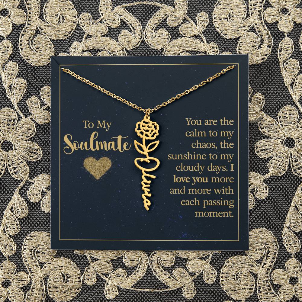 To My Soulmate | You are the calm to my chaos, the sunshine to my cloudy days - Flower Name Necklace
