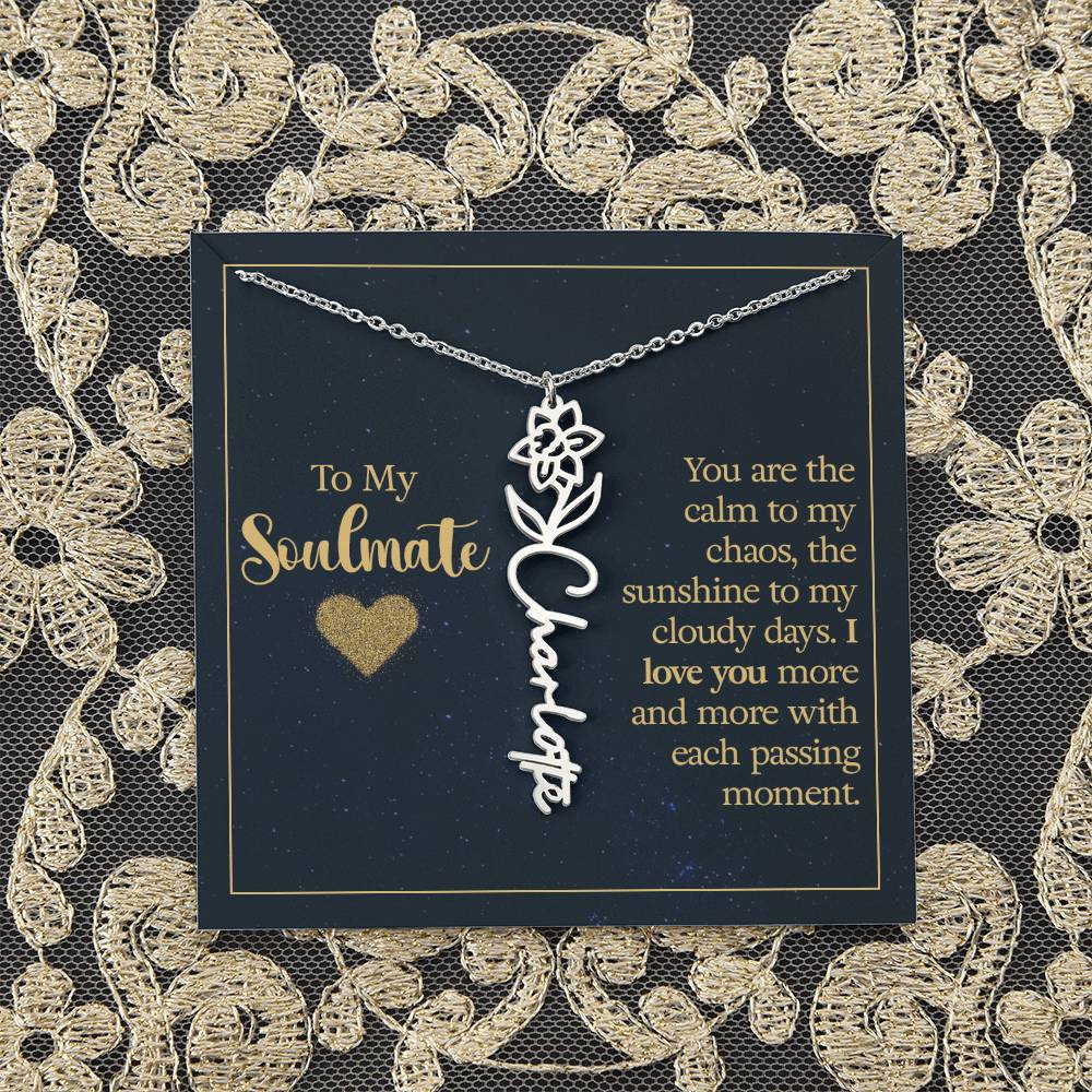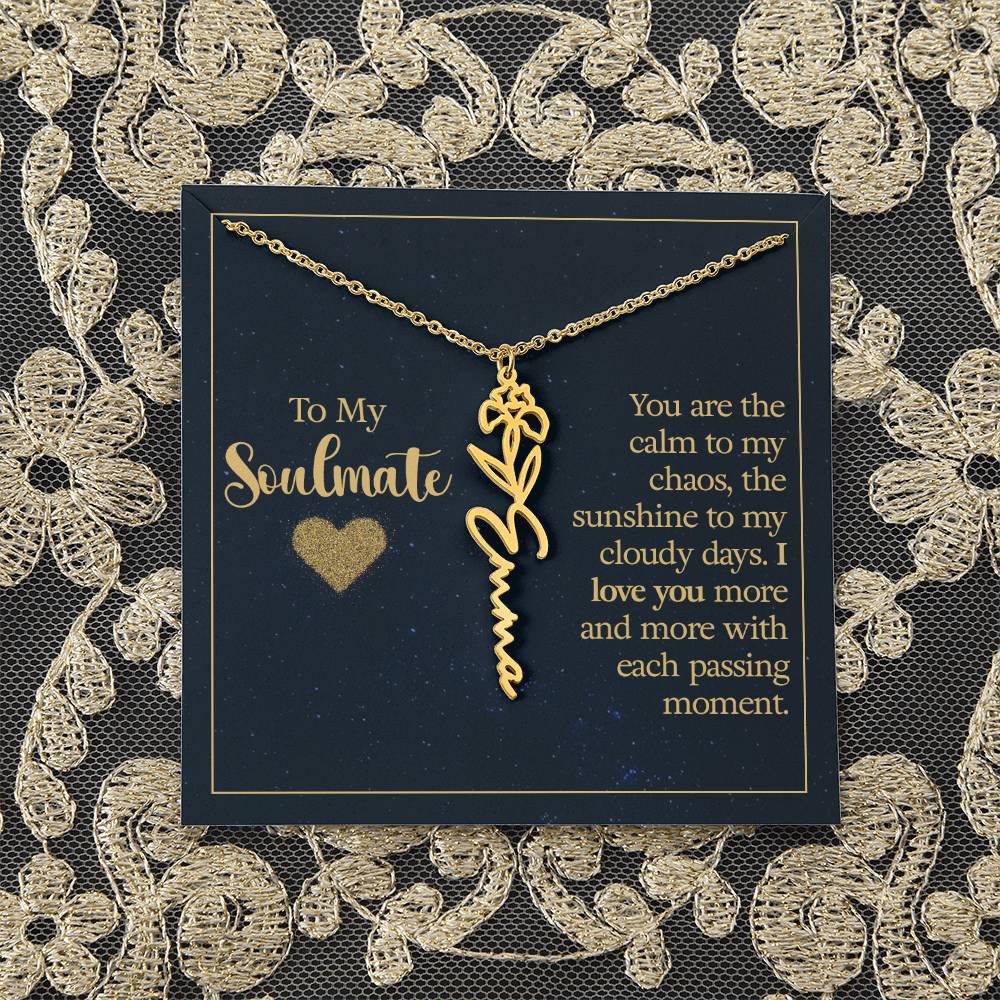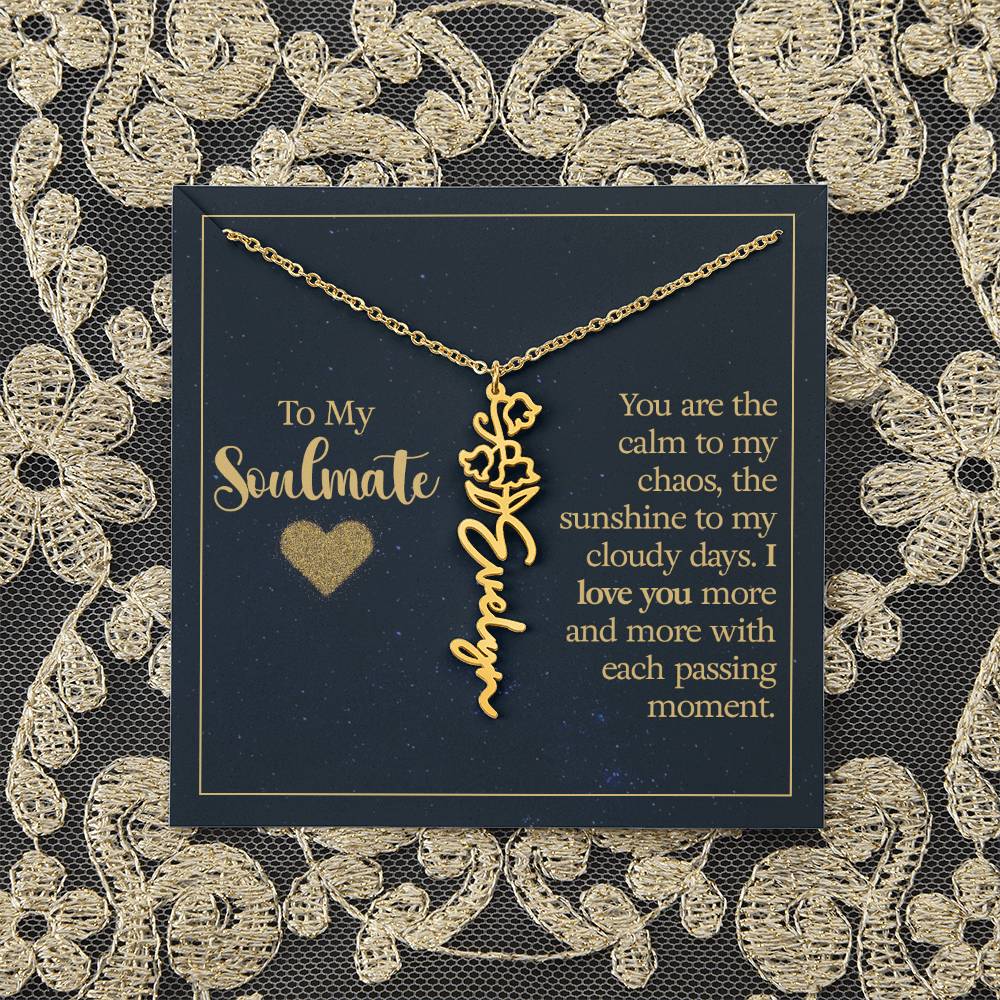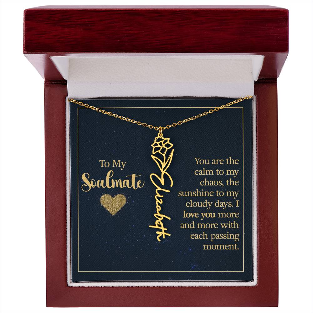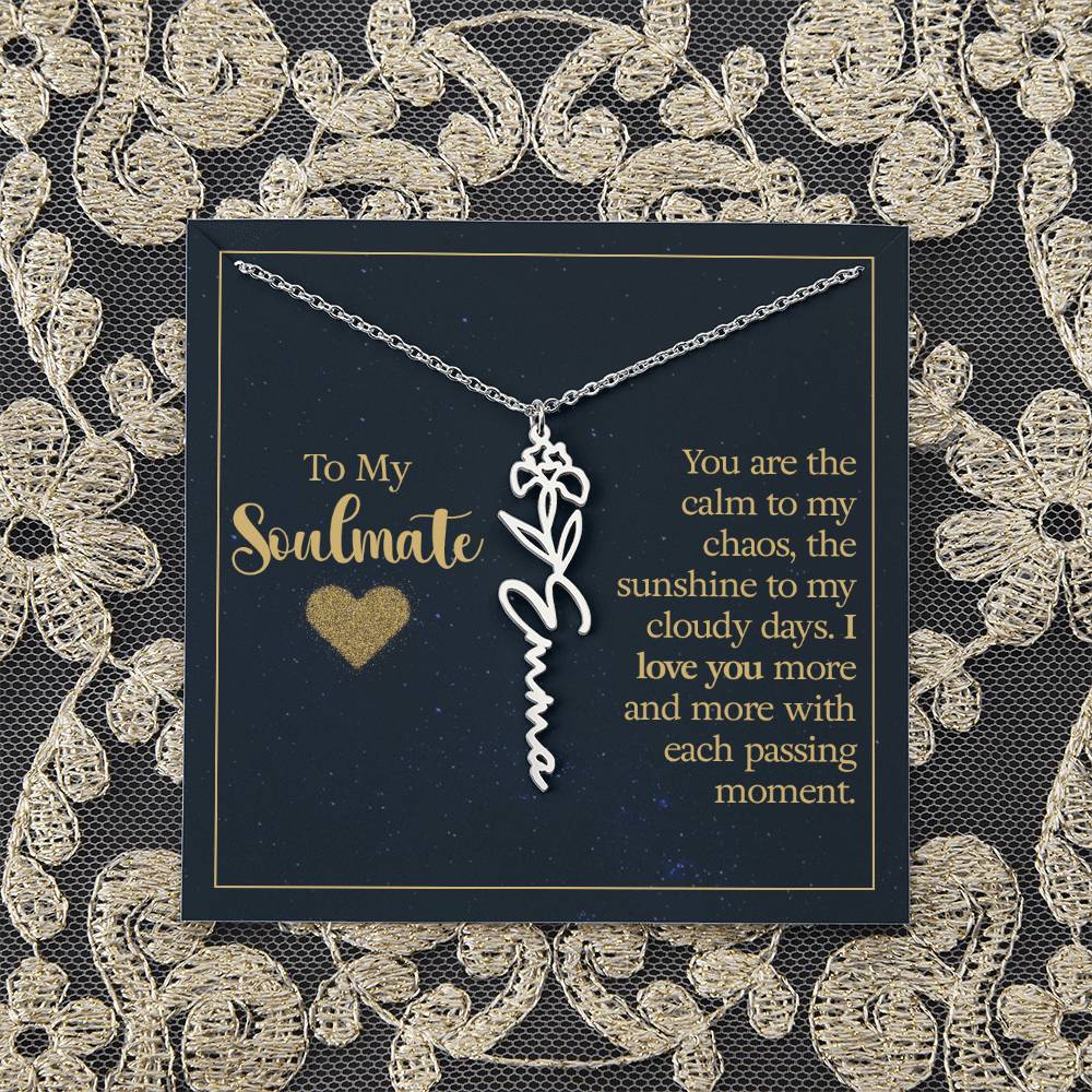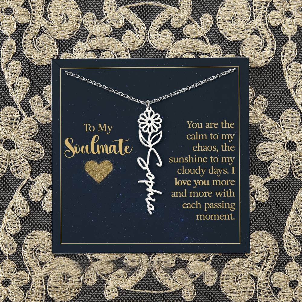 To My Soulmate | You are the calm to my chaos, the sunshine to my cloudy days - Flower Name Necklace