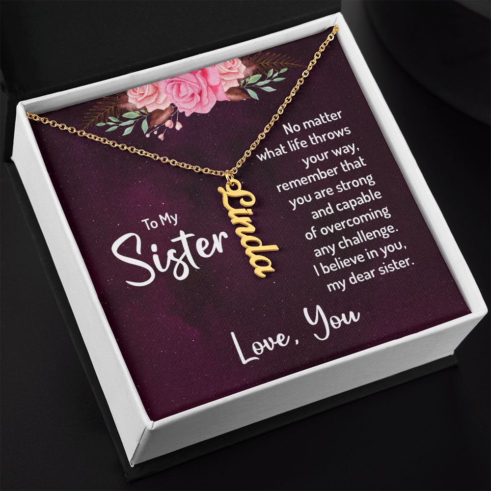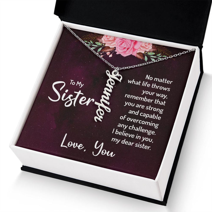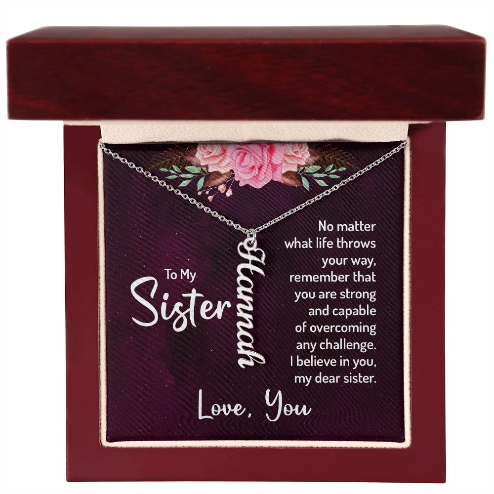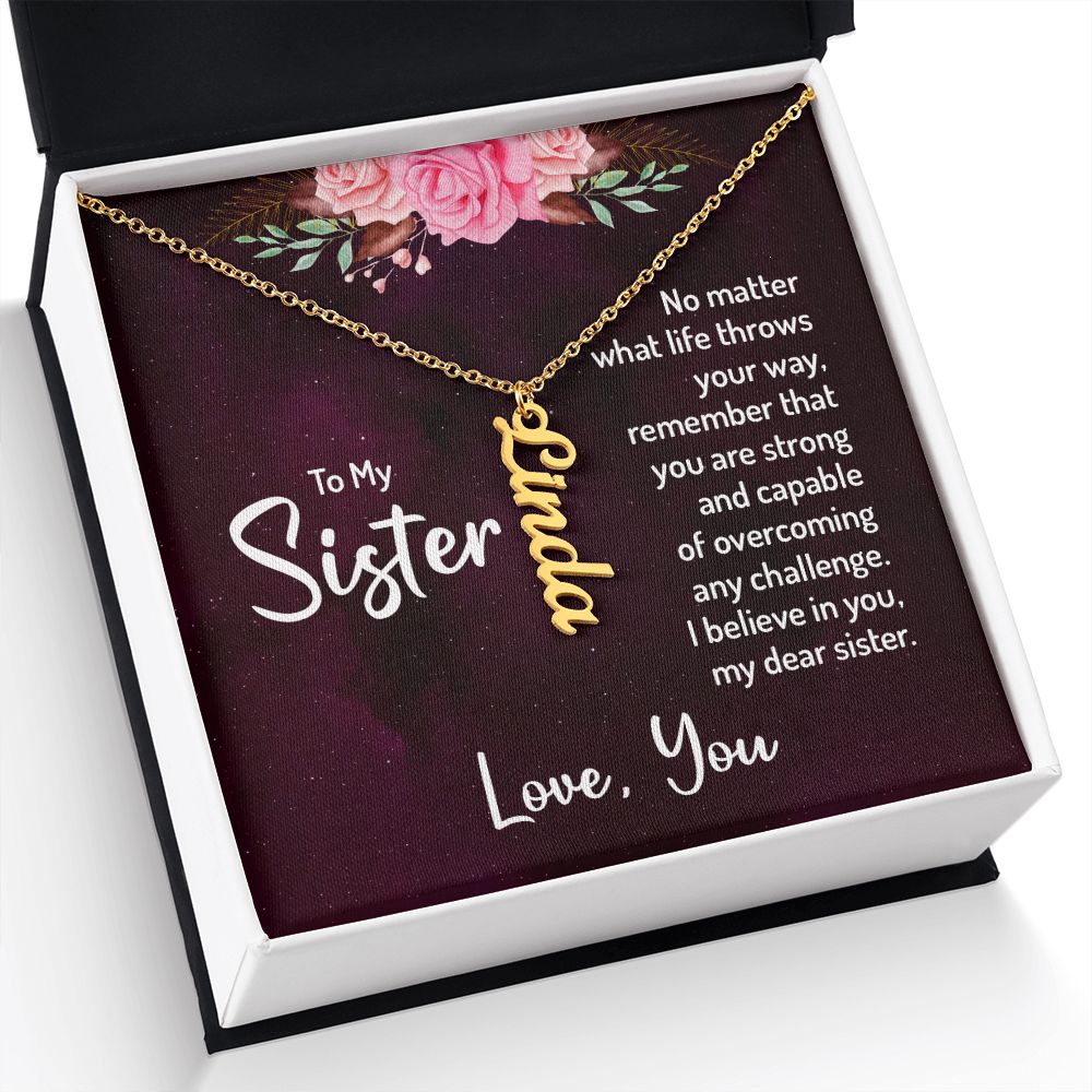 To My Sister | No matter what life throws your way, remember that you are strong and capable of overcoming any challenge. - Personalized Vertical Name Necklace