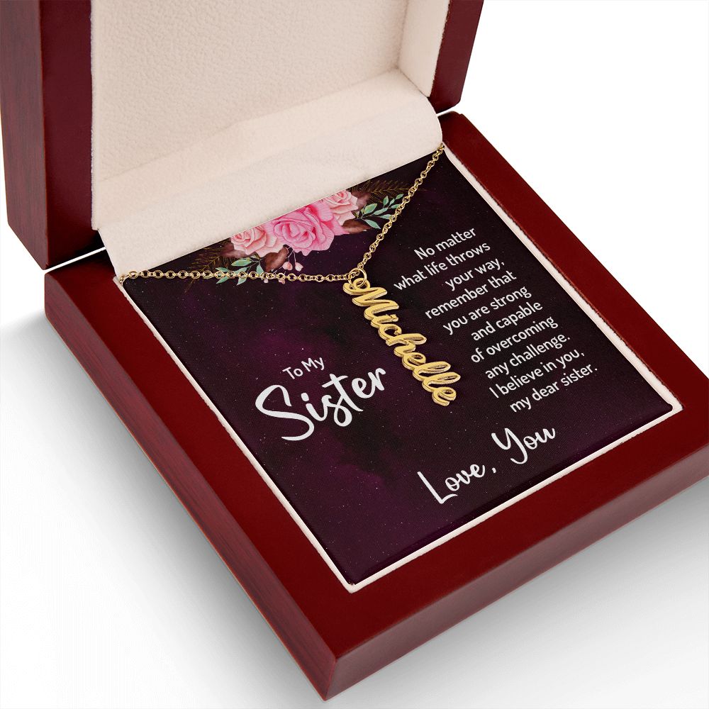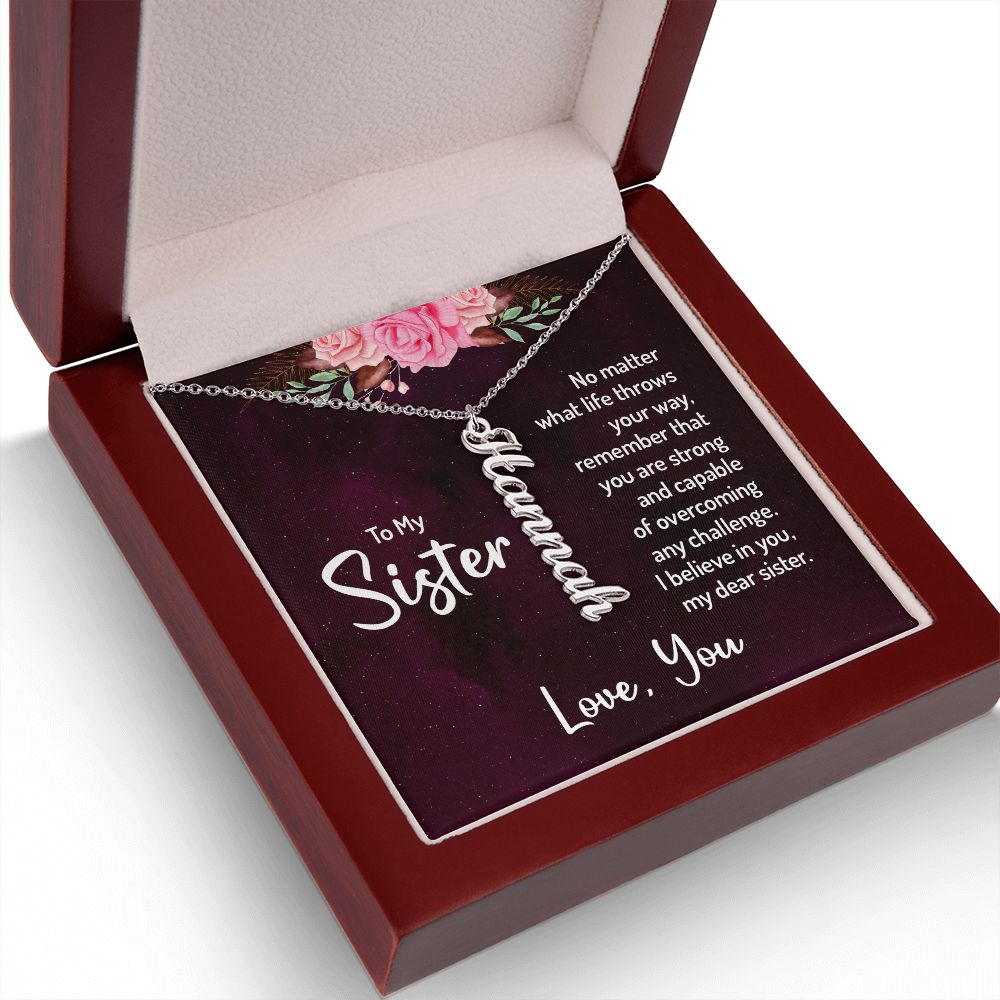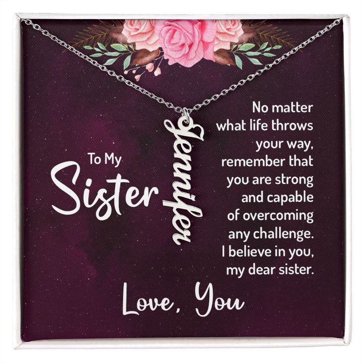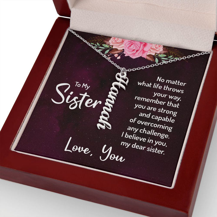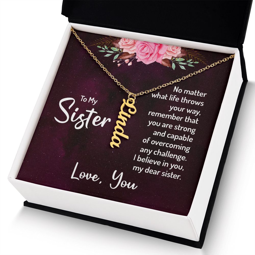 To My Sister | No matter what life throws your way, remember that you are strong and capable of overcoming any challenge. - Personalized Vertical Name Necklace