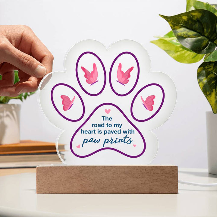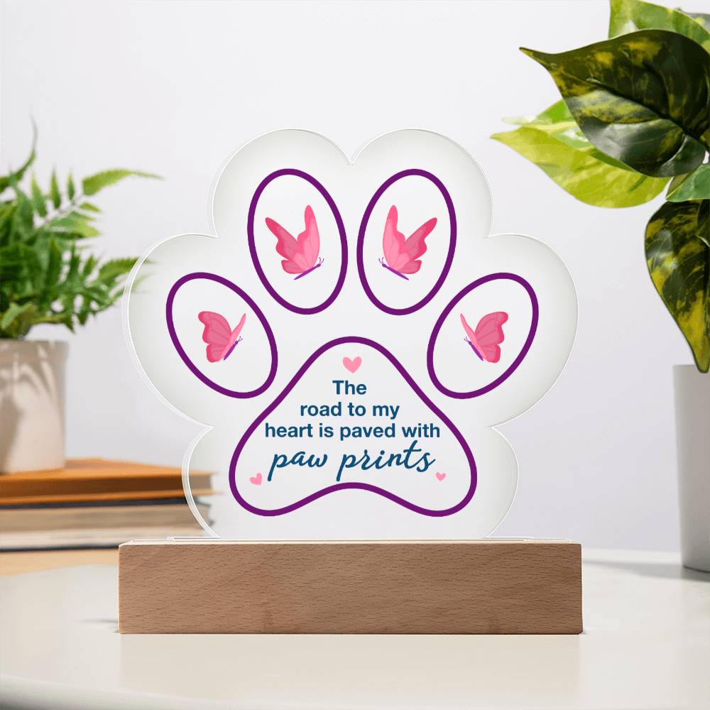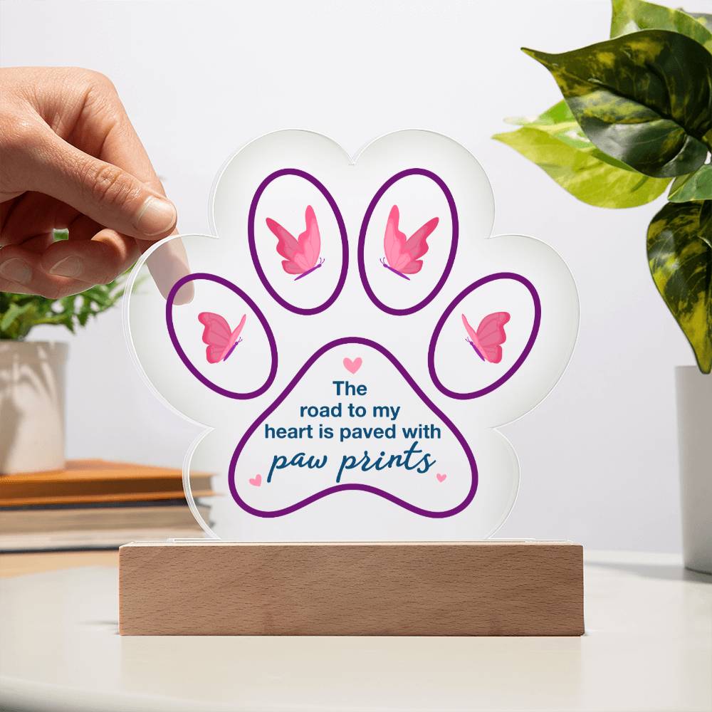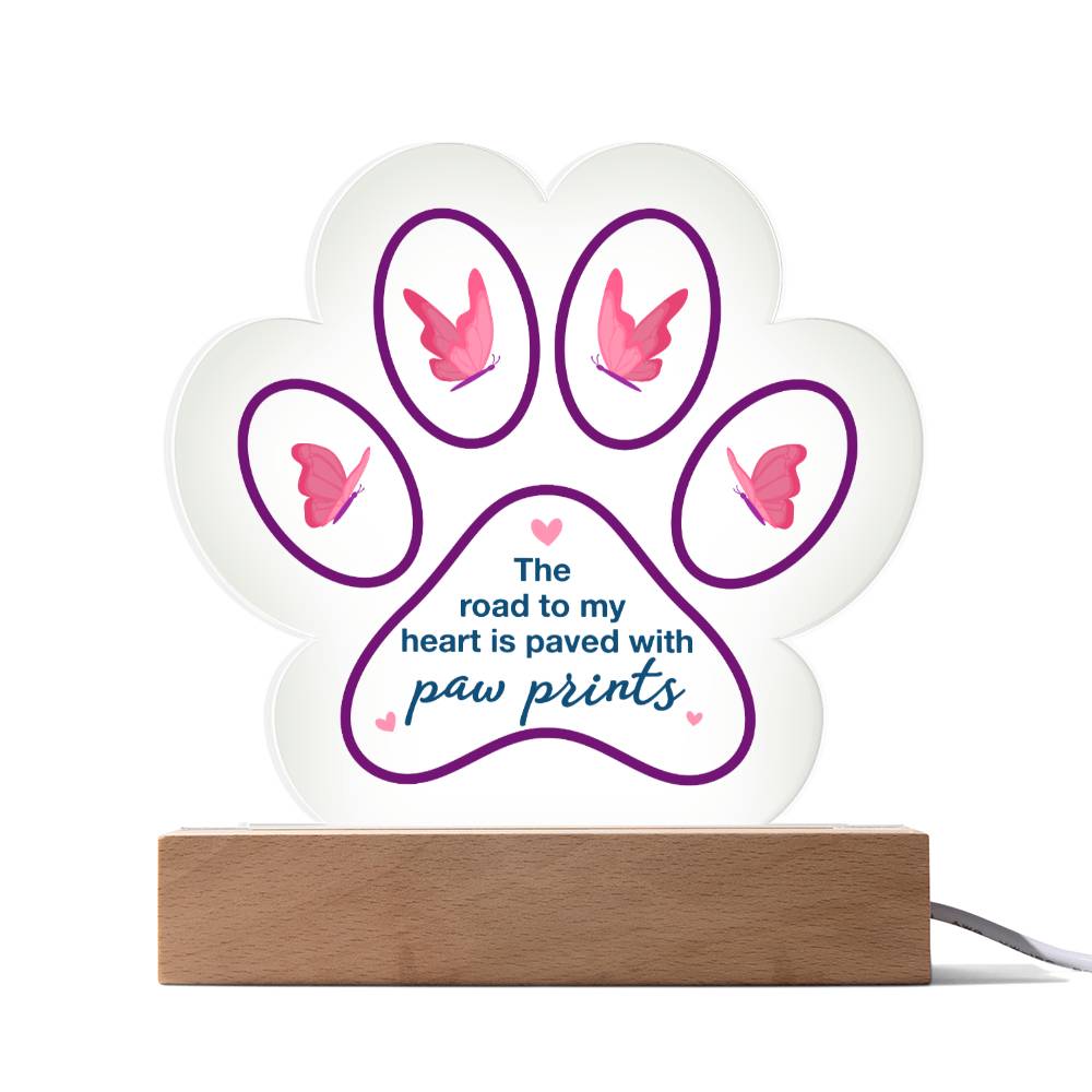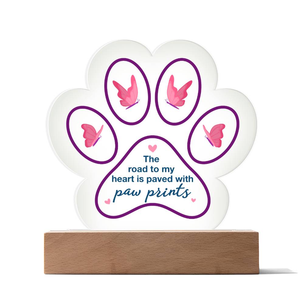 The road to my heart is paved with paw prints - Printed Paw Print Acrylic Plaque