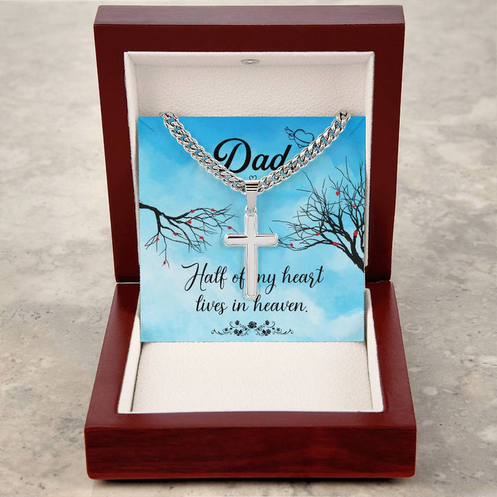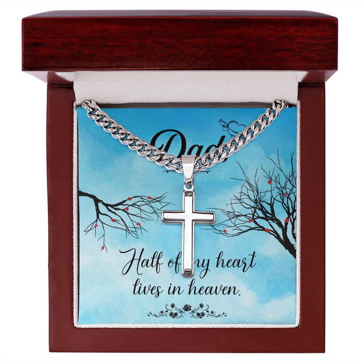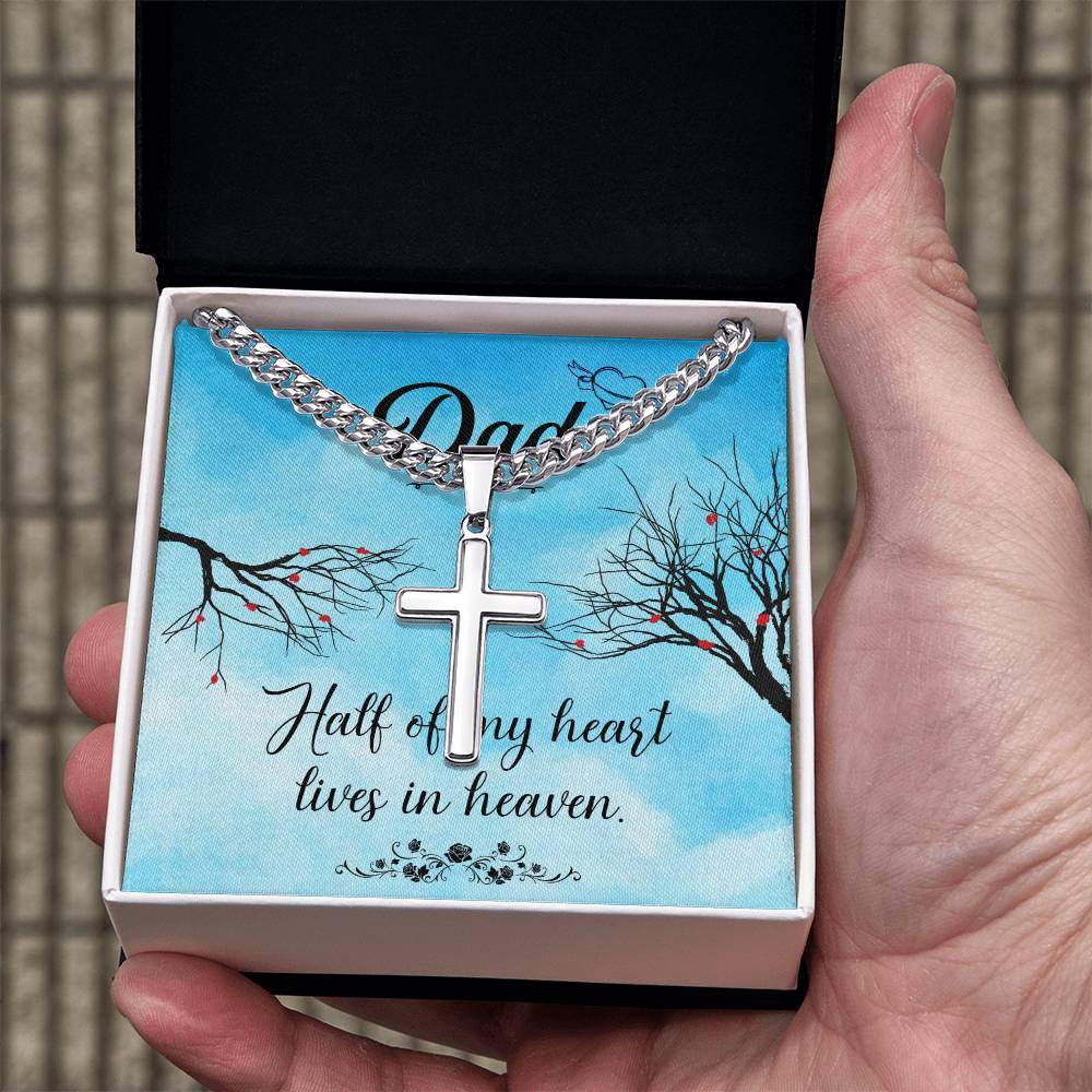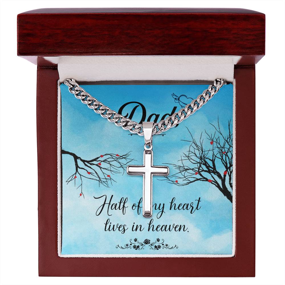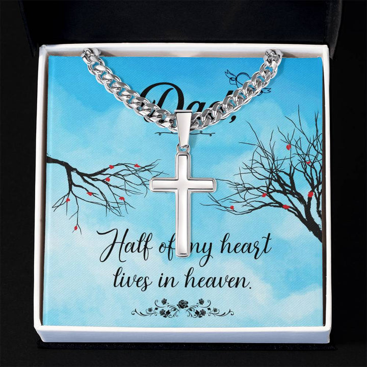 Dad | Half of my heart lives in heaven - Artisan Cross Necklace on Cuban Chain