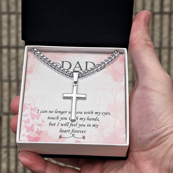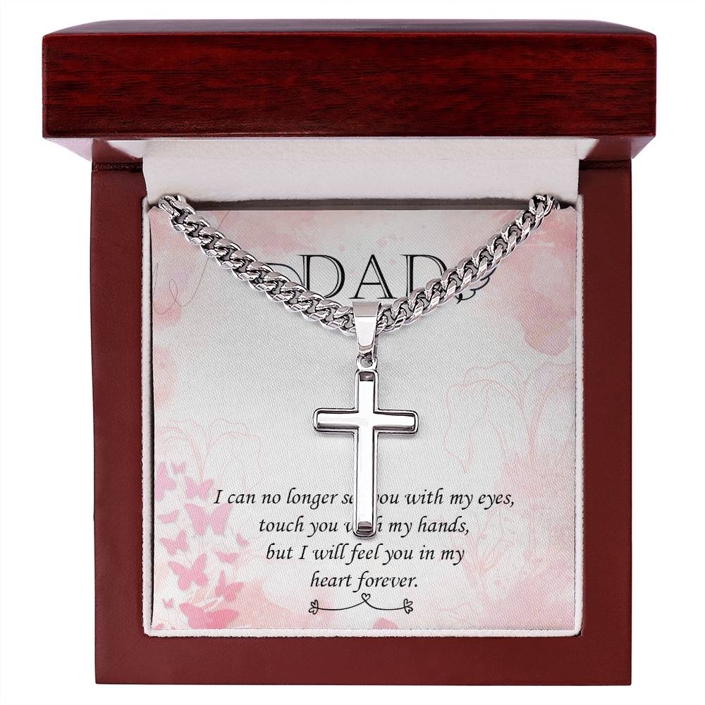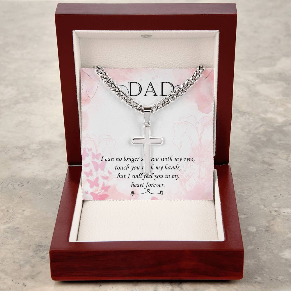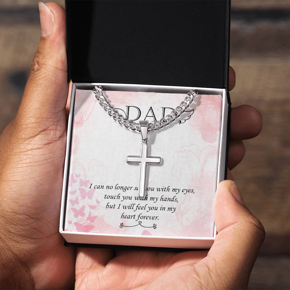 Dad | I can no longer see you with my eyes, touch you with my hands, but I will feel you in my heart forever - Artisan Cross Necklace on Cuban Chain