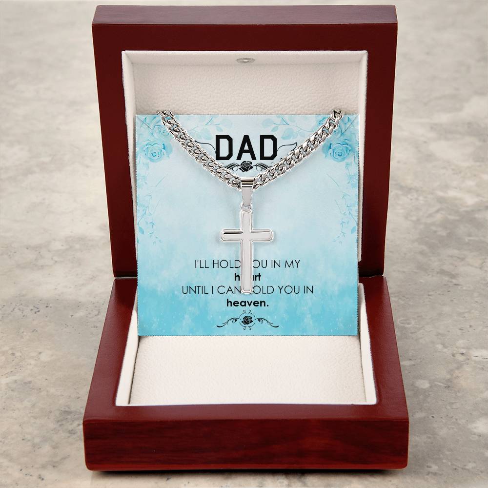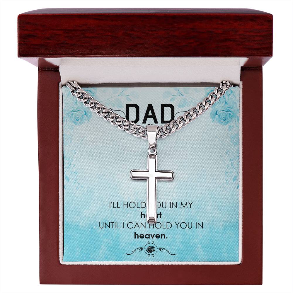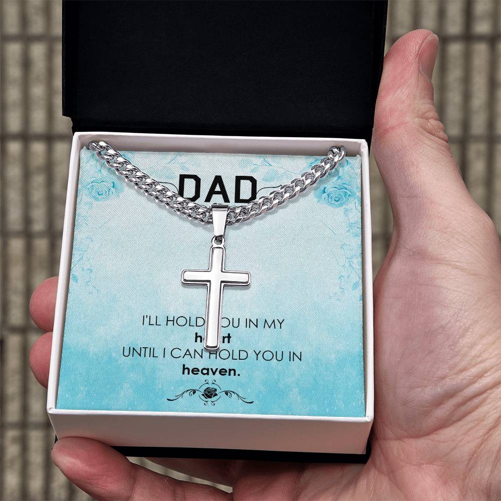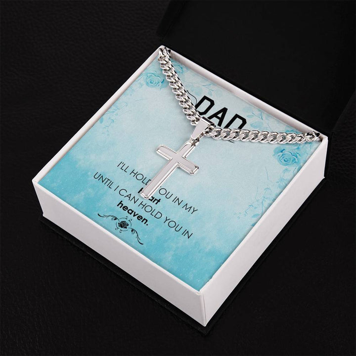 Dad | I'll hold you in my heat, until I can hold you in heaven - Artisan Cross Necklace on Cuban Chain