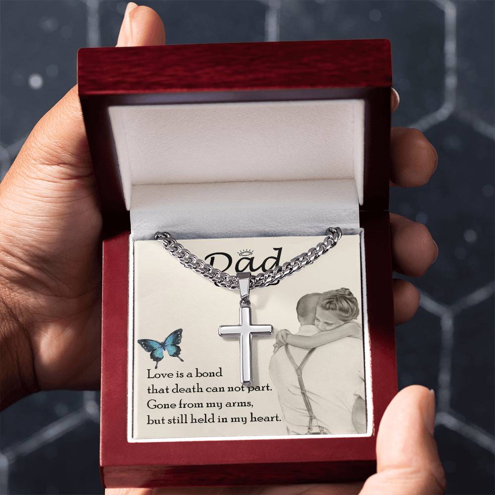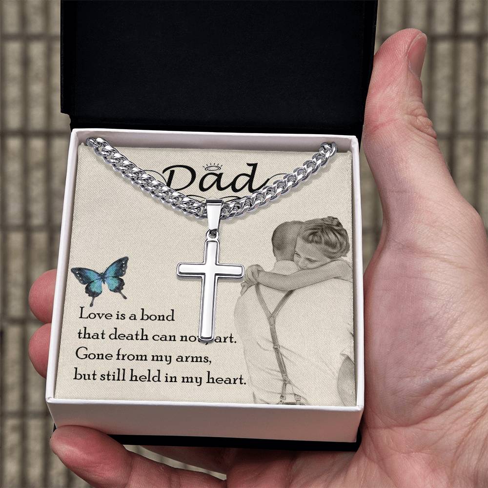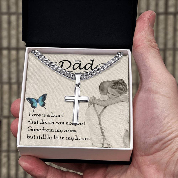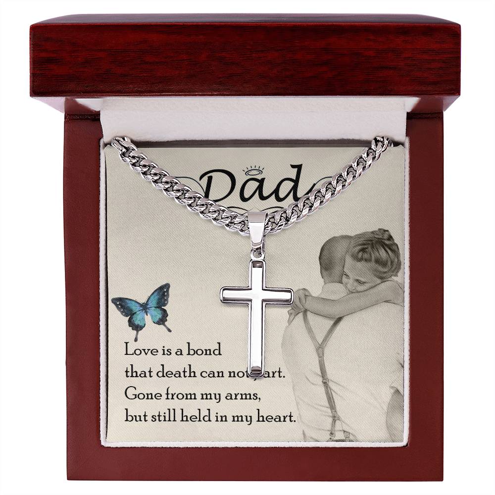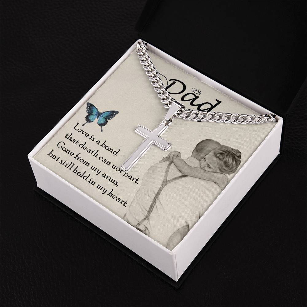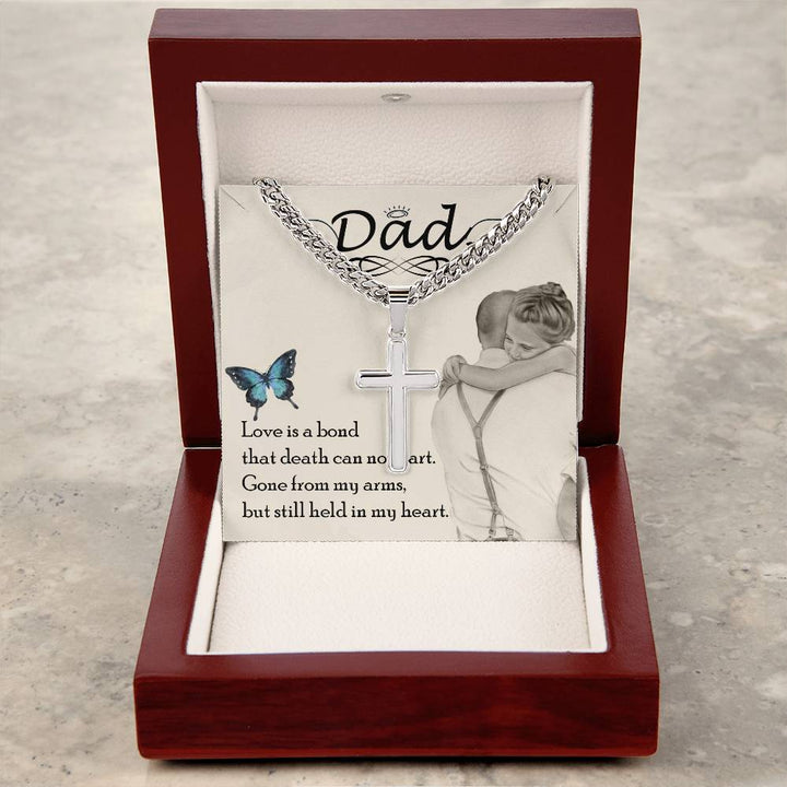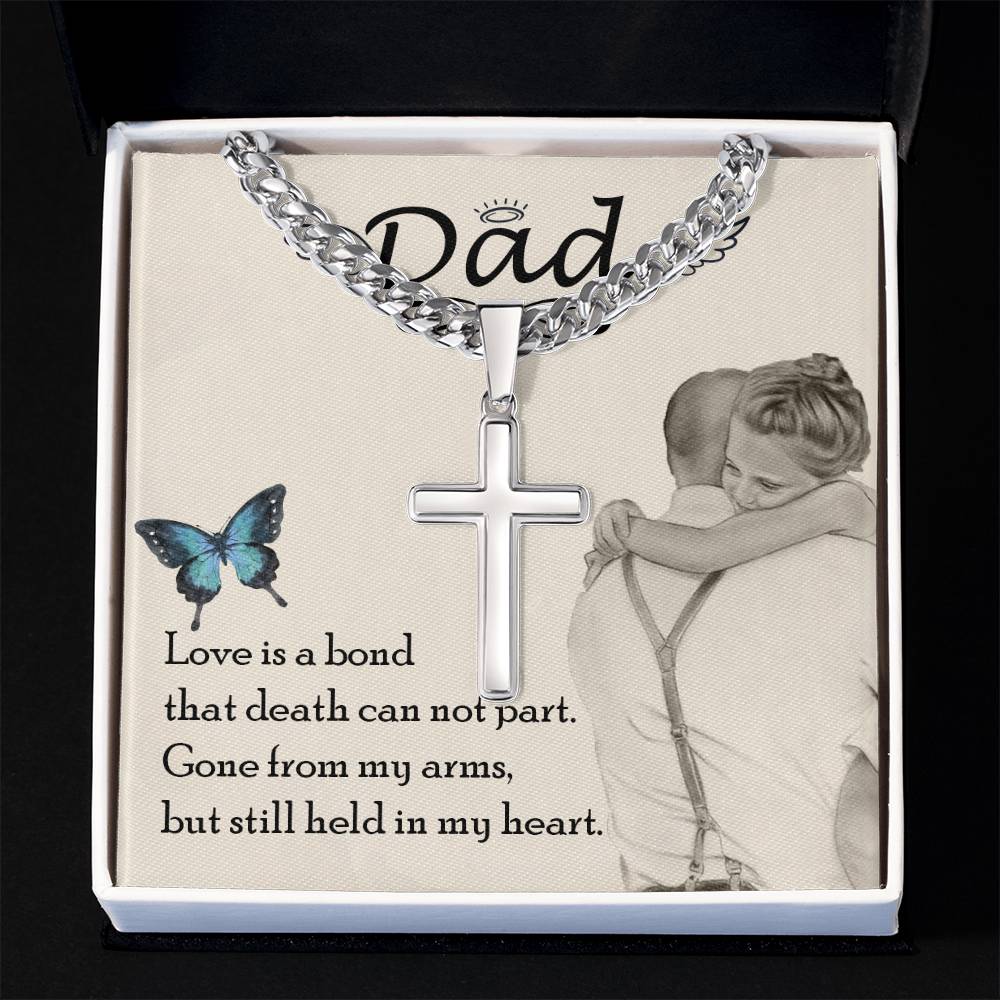 Dad | Love is bond that death can not part. Gone from my arms, but still held in my heart - Artisan Cross Necklace on Cuban Chain