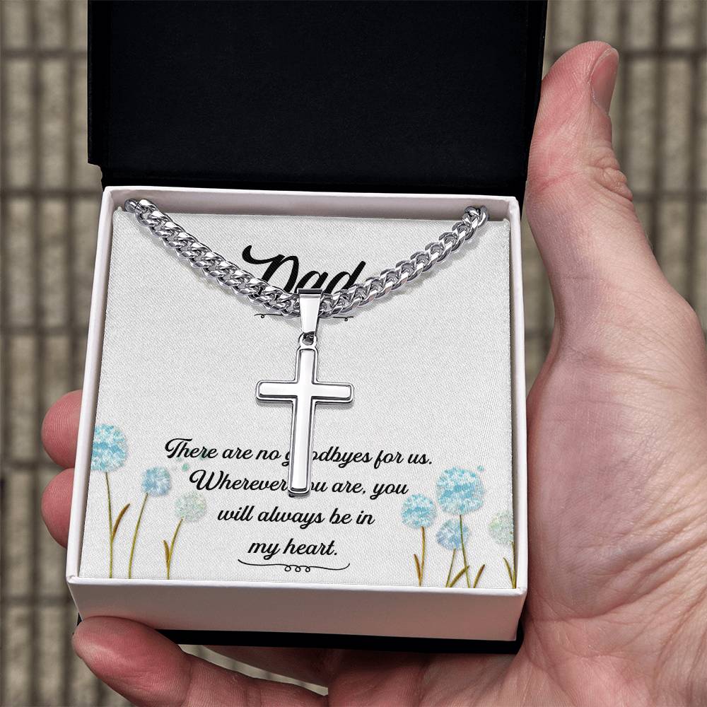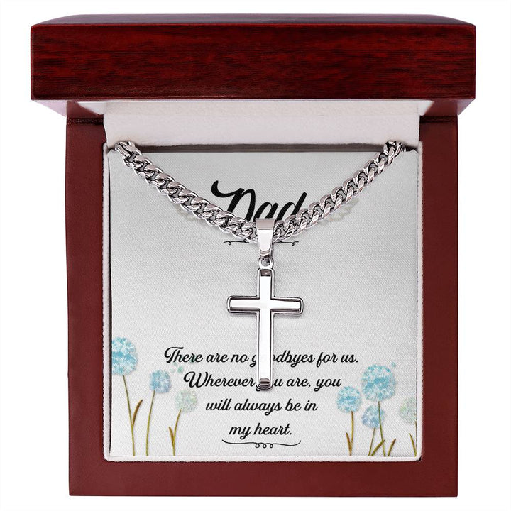 Dad | There are no goodbyes for us. Wherever you are, you will always be in my heart - Artisan Cross Necklace on Cuban Chain
