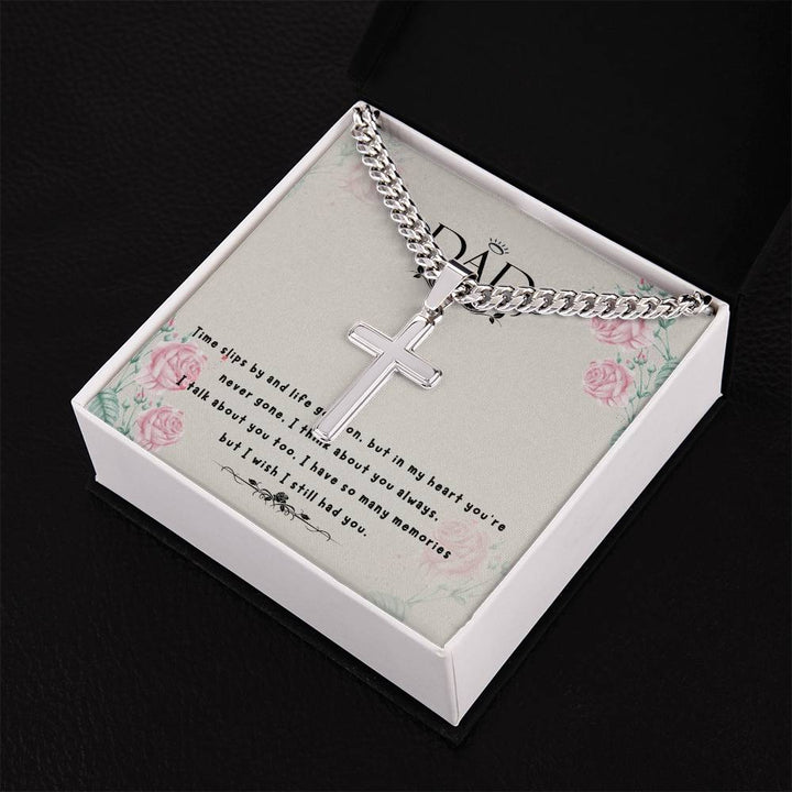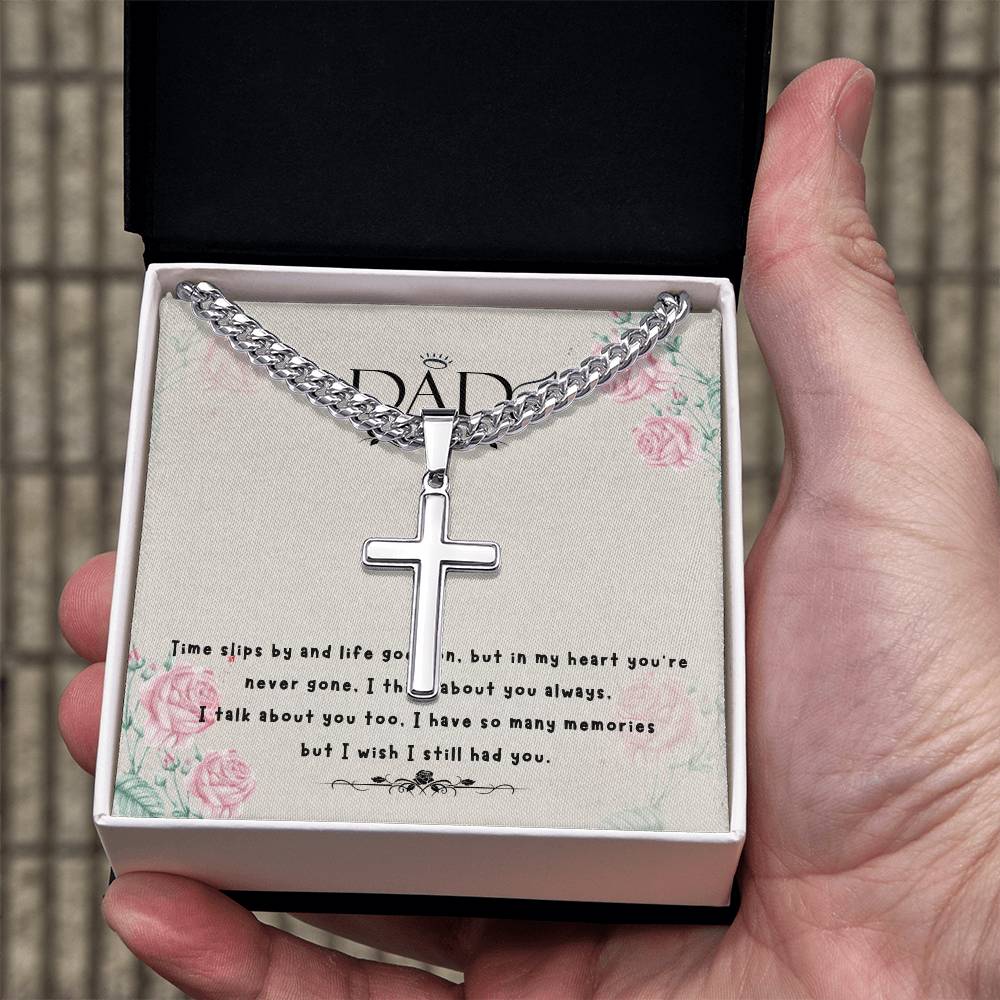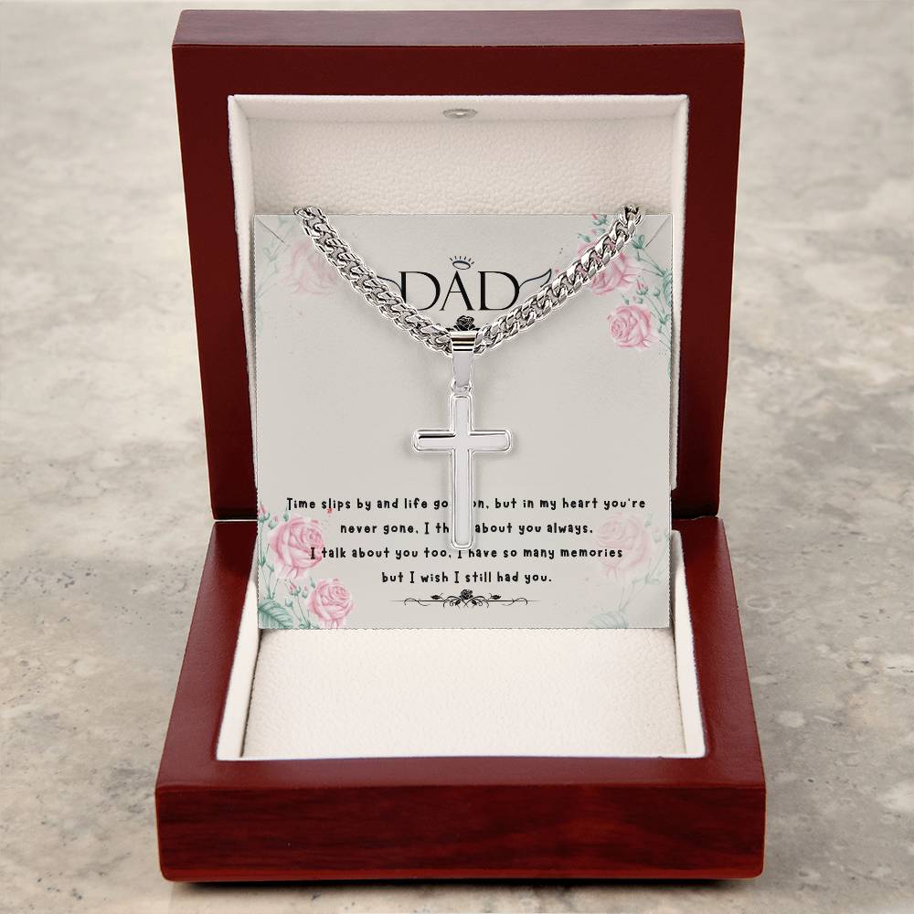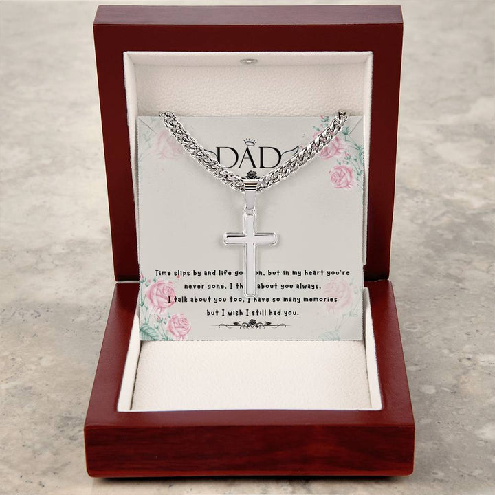 Dad | Time slips by and life goes on, but in my heart you're never gone. I think about you always - Artisan Cross Necklace on Cuban Chain