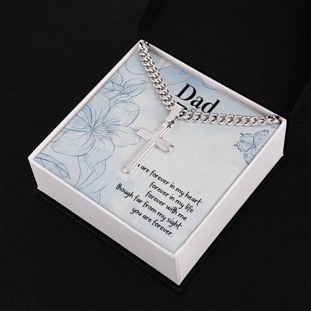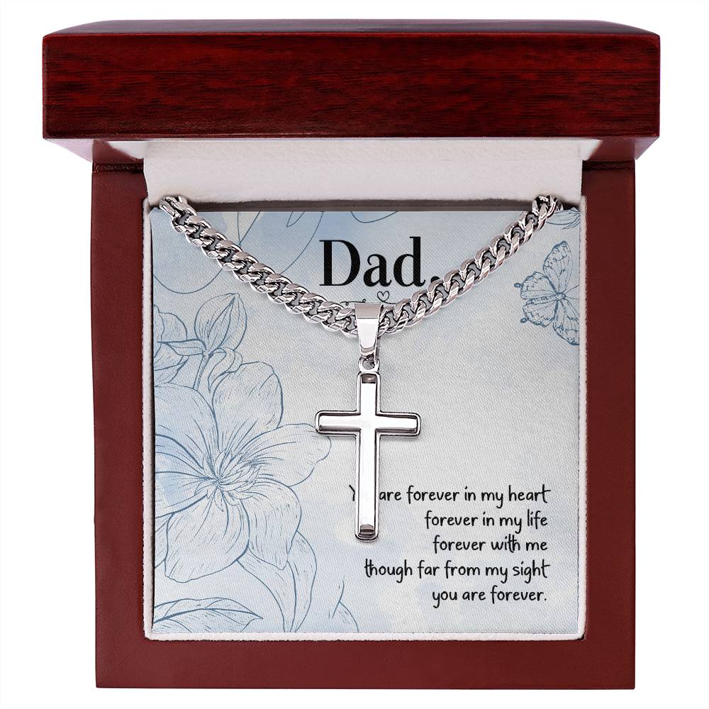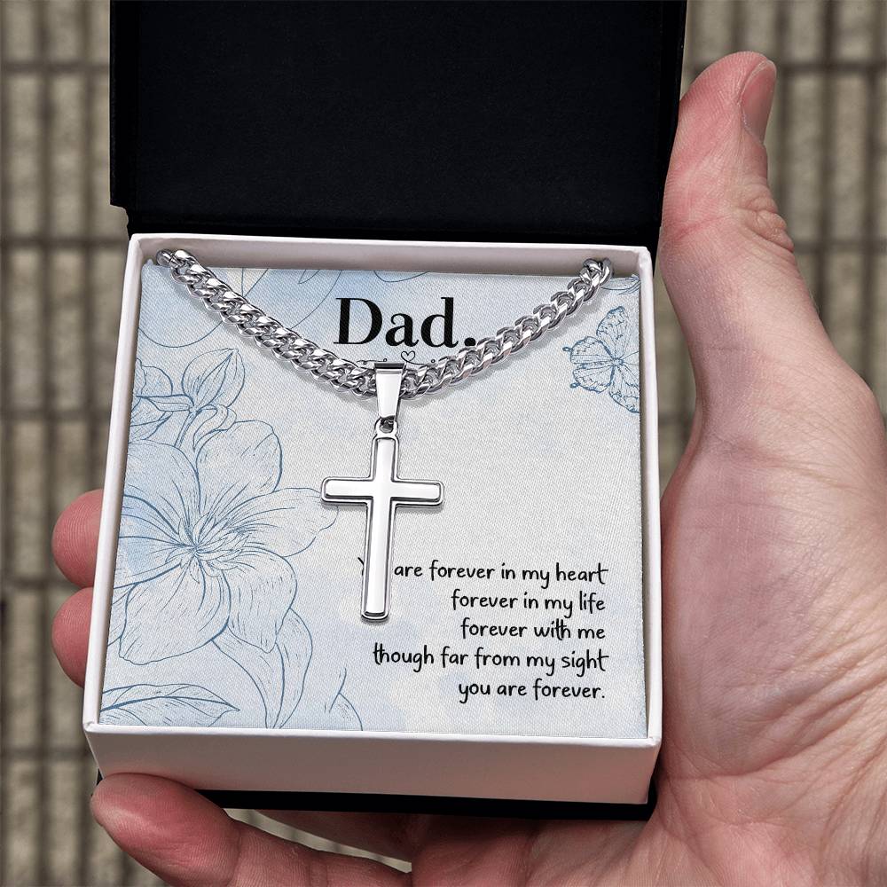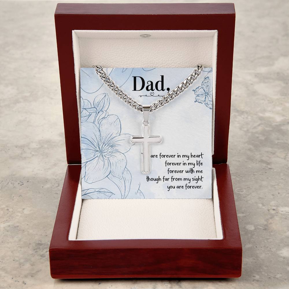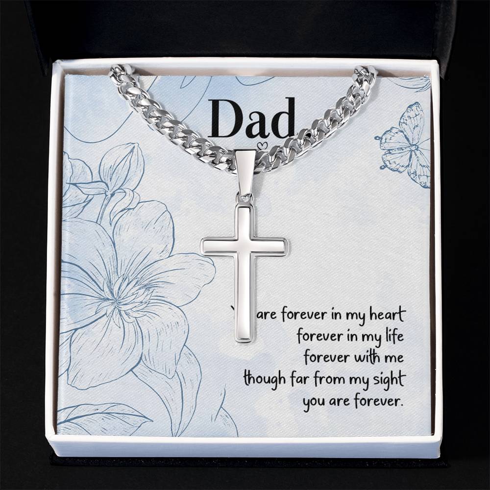 Dad | You are forever in my heart, forever in my life, forever with me though far from my sight you are forever. - Artisan Cross Necklace on Cuban Chain