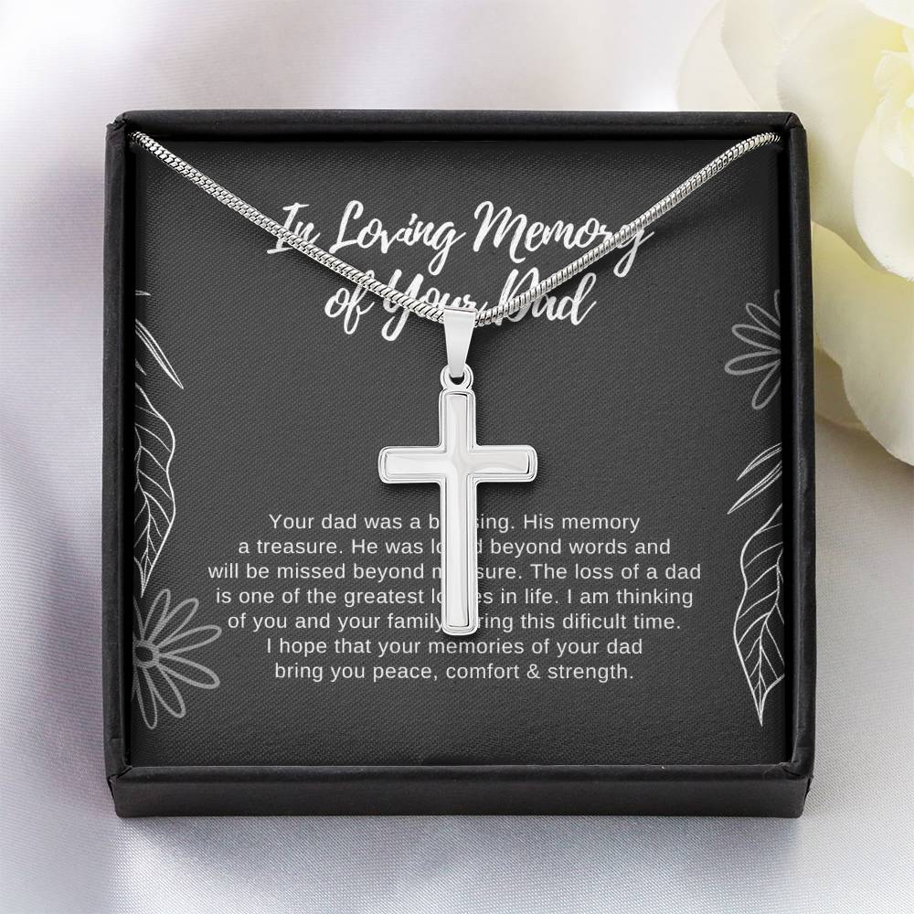 In Loving Memory of Your Dad | Your dad was a blessing. His memory a treasure. He was loved beyond words - Stainless Cross Necklace