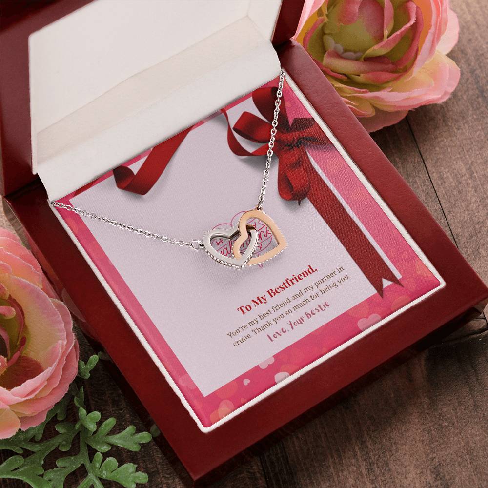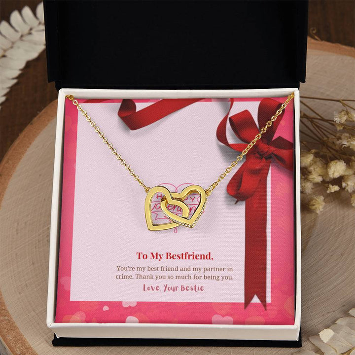 Happy Valentine's Day | To My Bestfriend - You're my best friend and my partner in crime - Interlocking Hearts Necklace