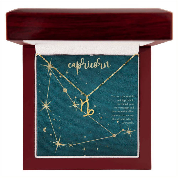Capricorn | You are a responsible and dependable individual , your inner strength and determination allow you to overcome any obstacle and achieve you goals. - Zodiac Name Necklace