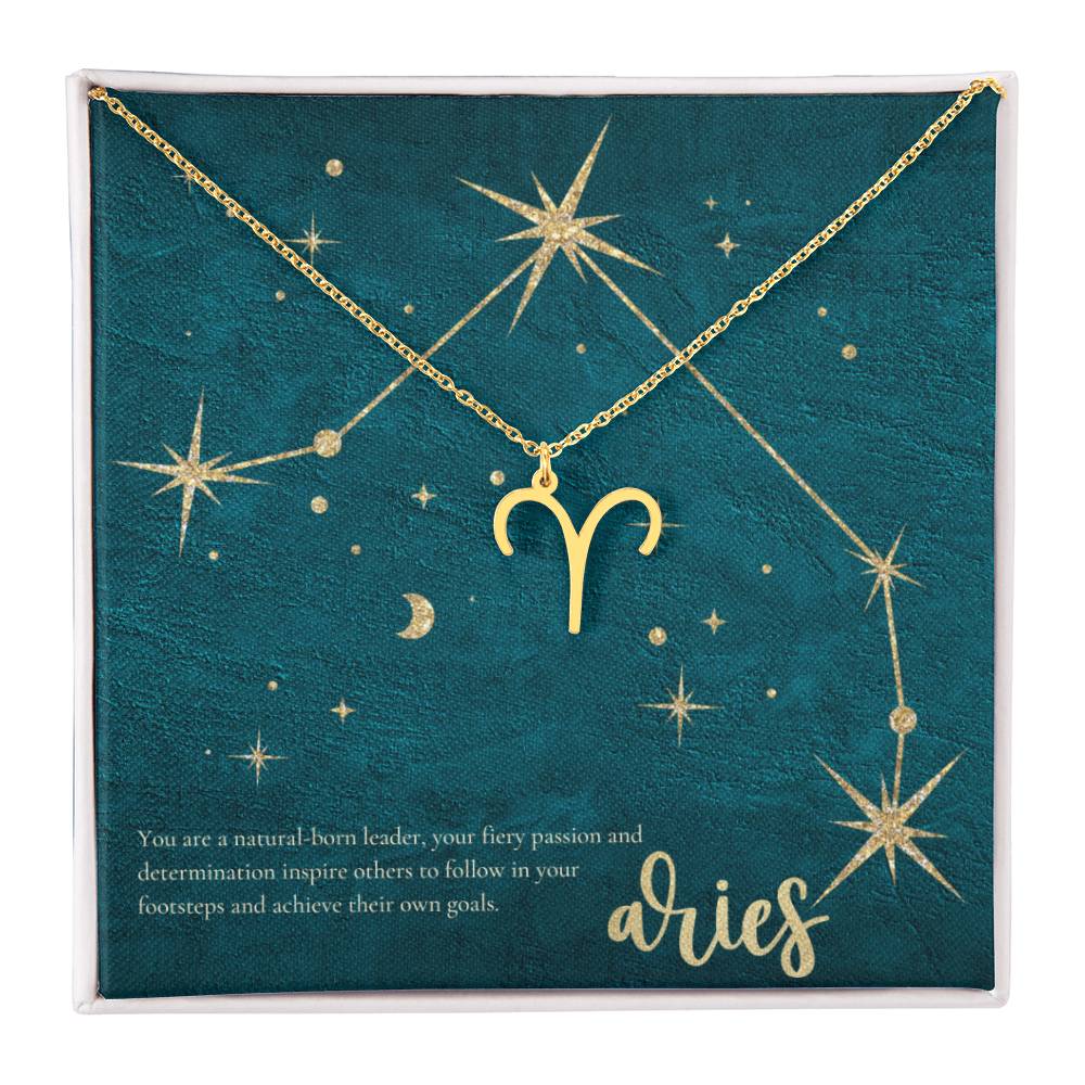 Aries | You are a natural-born leader, your fiery passion and determination inspire others to follow in your footsteps and achieve their own goals. - Zodiac Name Necklace