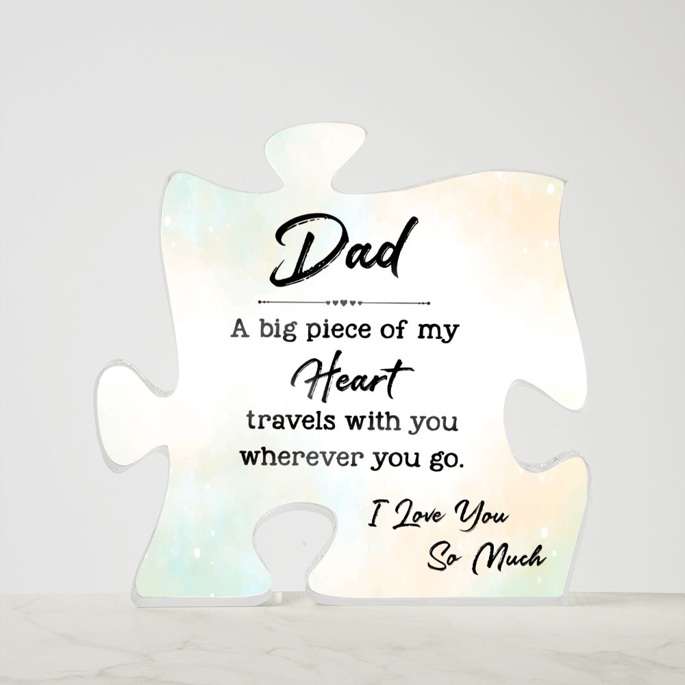 Dad | A big Piece Of My Heart travels with you wherever you go. - Printed Acrylic Puzzle Plaque