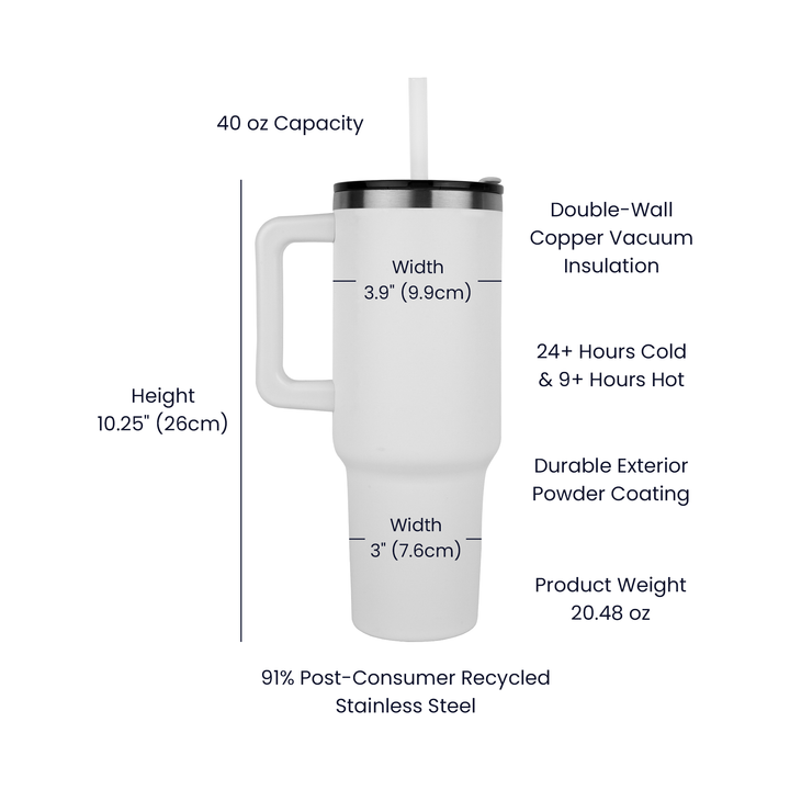 Looking for the ultimate hydration companion? Elevate your hydration game with the Pinnacle 40oz Tumbler, laser-engraved for an elegant blend of style and performance. Crafted from premium stainless steel, this tumbler features advanced copper vacuum insulation to keep drinks cold for over 24 hours or hot for over 9 hours. The sleek matte finish, matching handle, and spill-proof lid offer a luxurious look and feel, while the slim base ensures it fits in most car cup holders, making it perfect for on-the-go hydration.