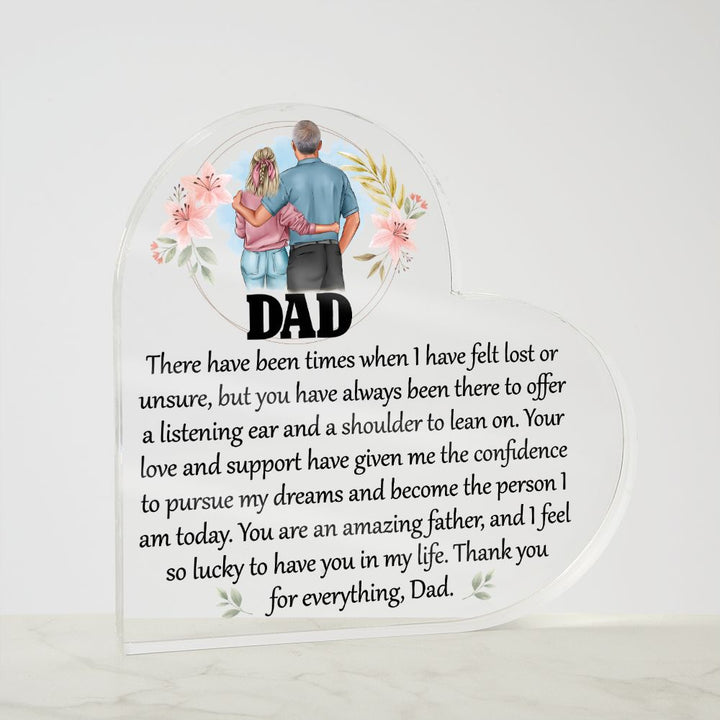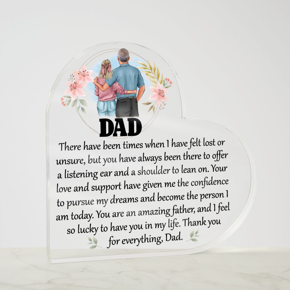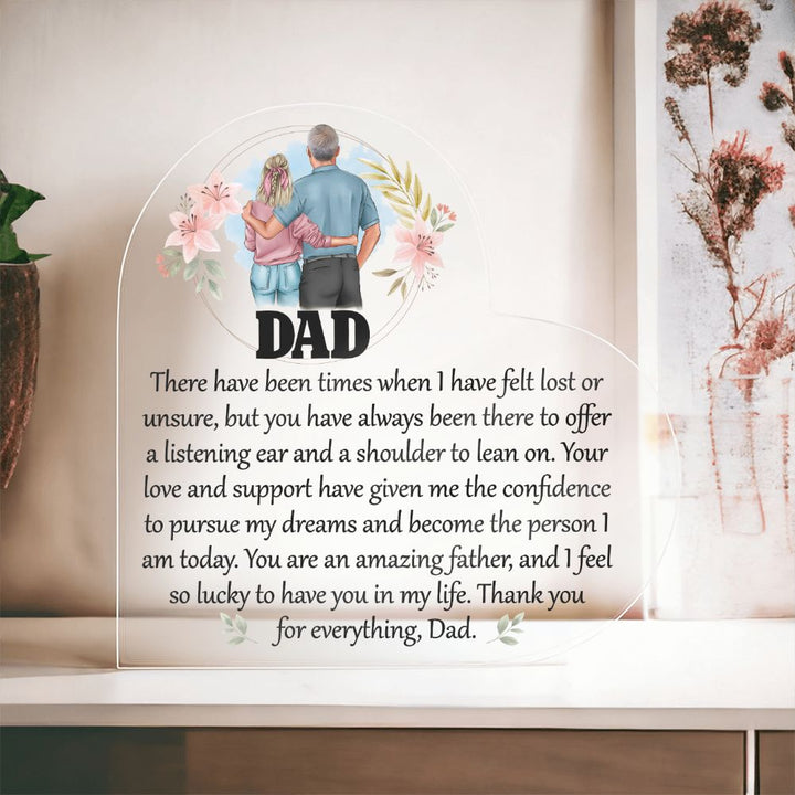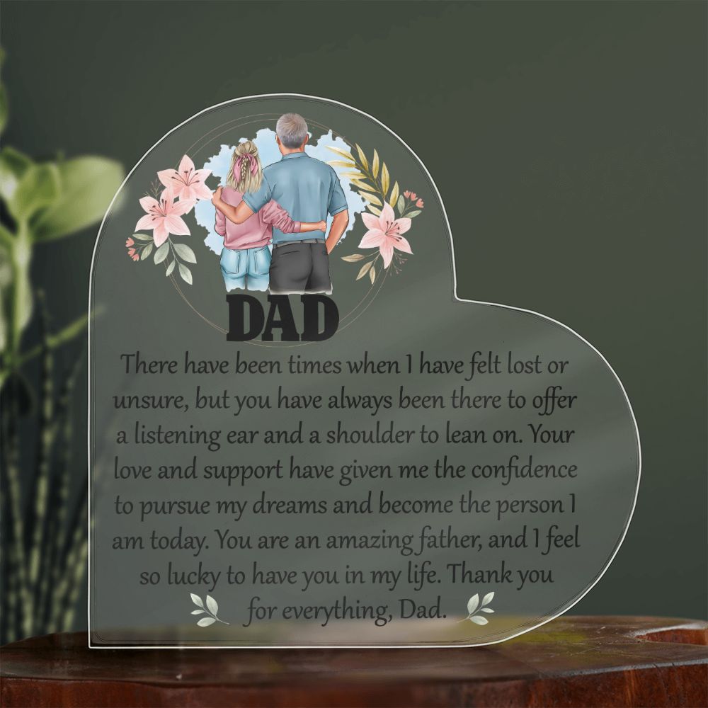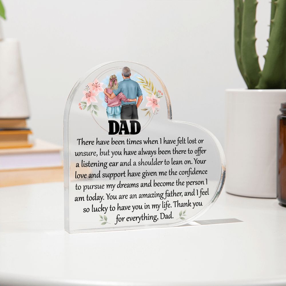 Dad | Your love and support have given me the confidence to pursue my dreams and become the person I am today - Printed Heart Shaped Acrylic Plaque
