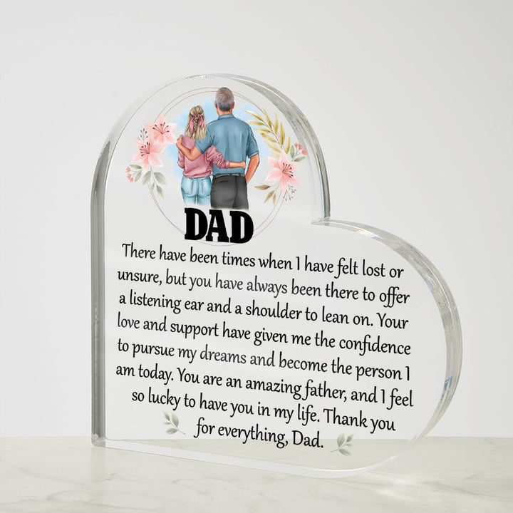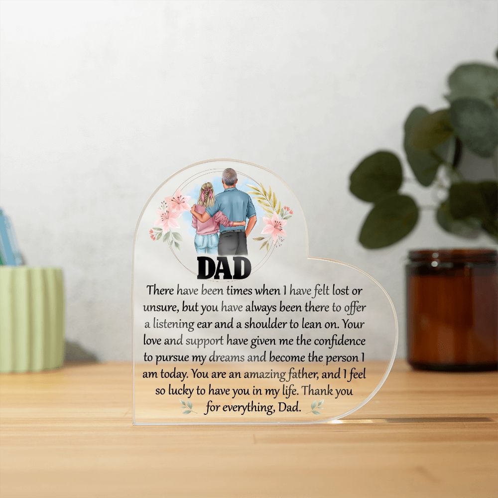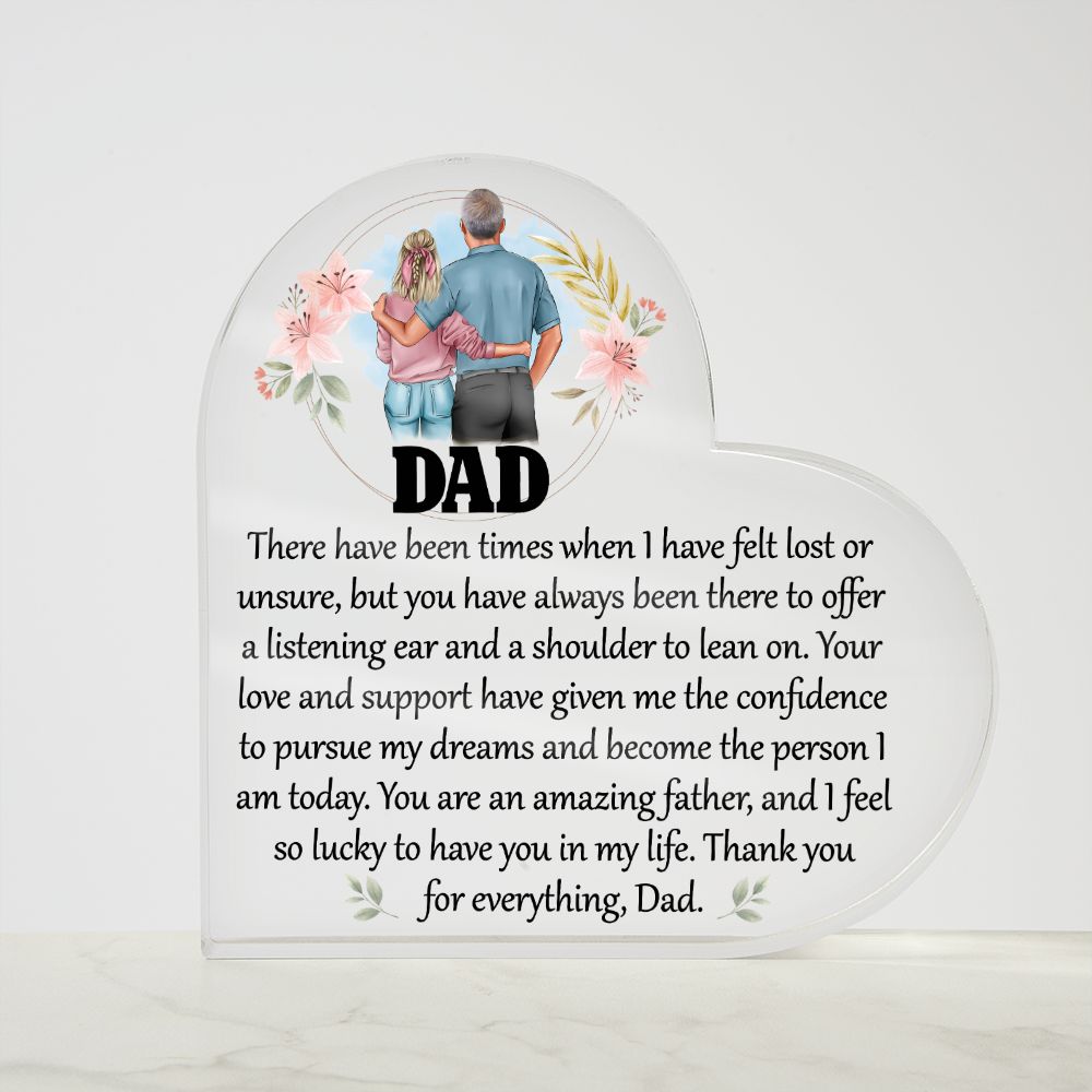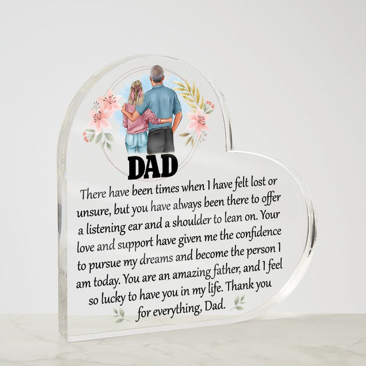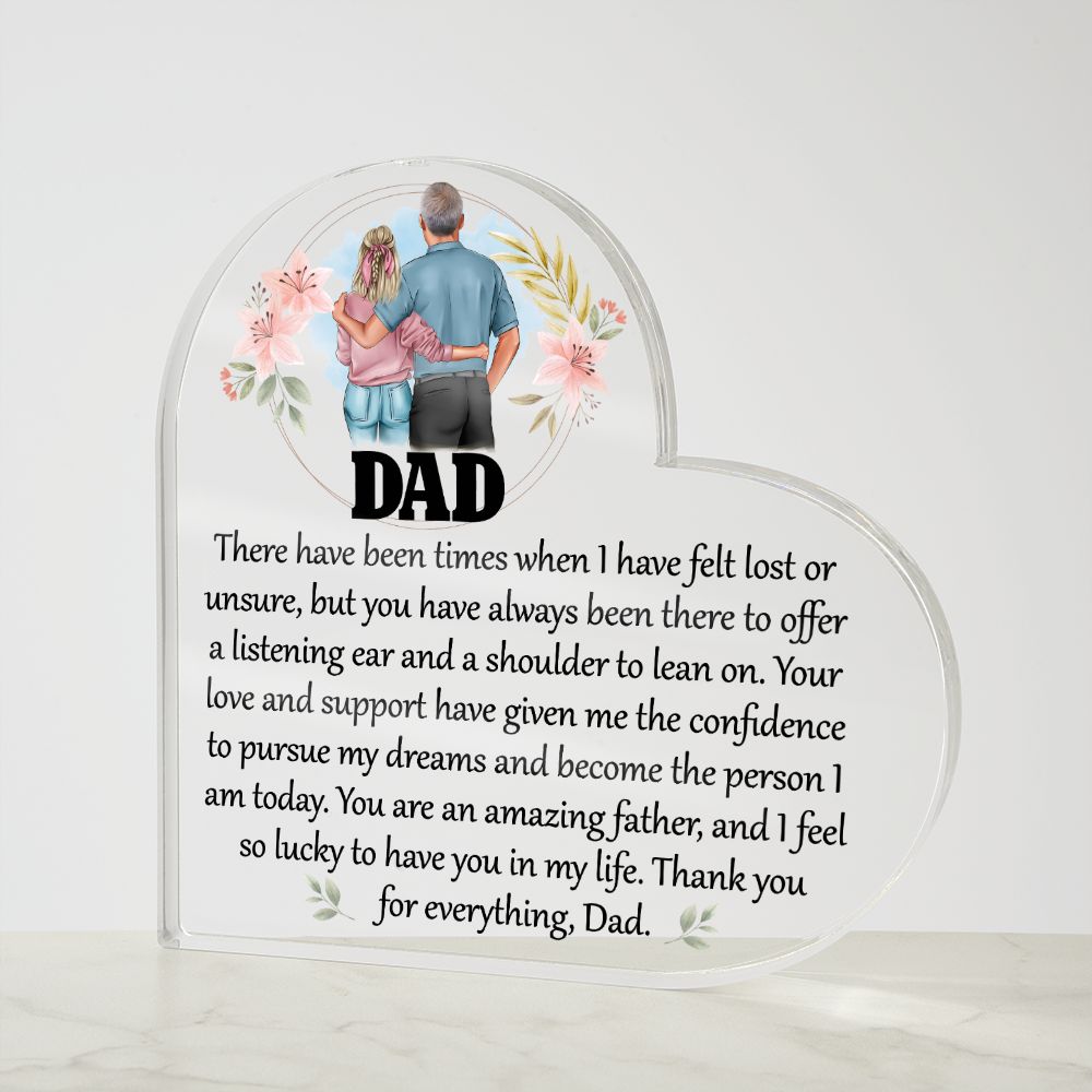 Dad | Your love and support have given me the confidence to pursue my dreams and become the person I am today - Printed Heart Shaped Acrylic Plaque
